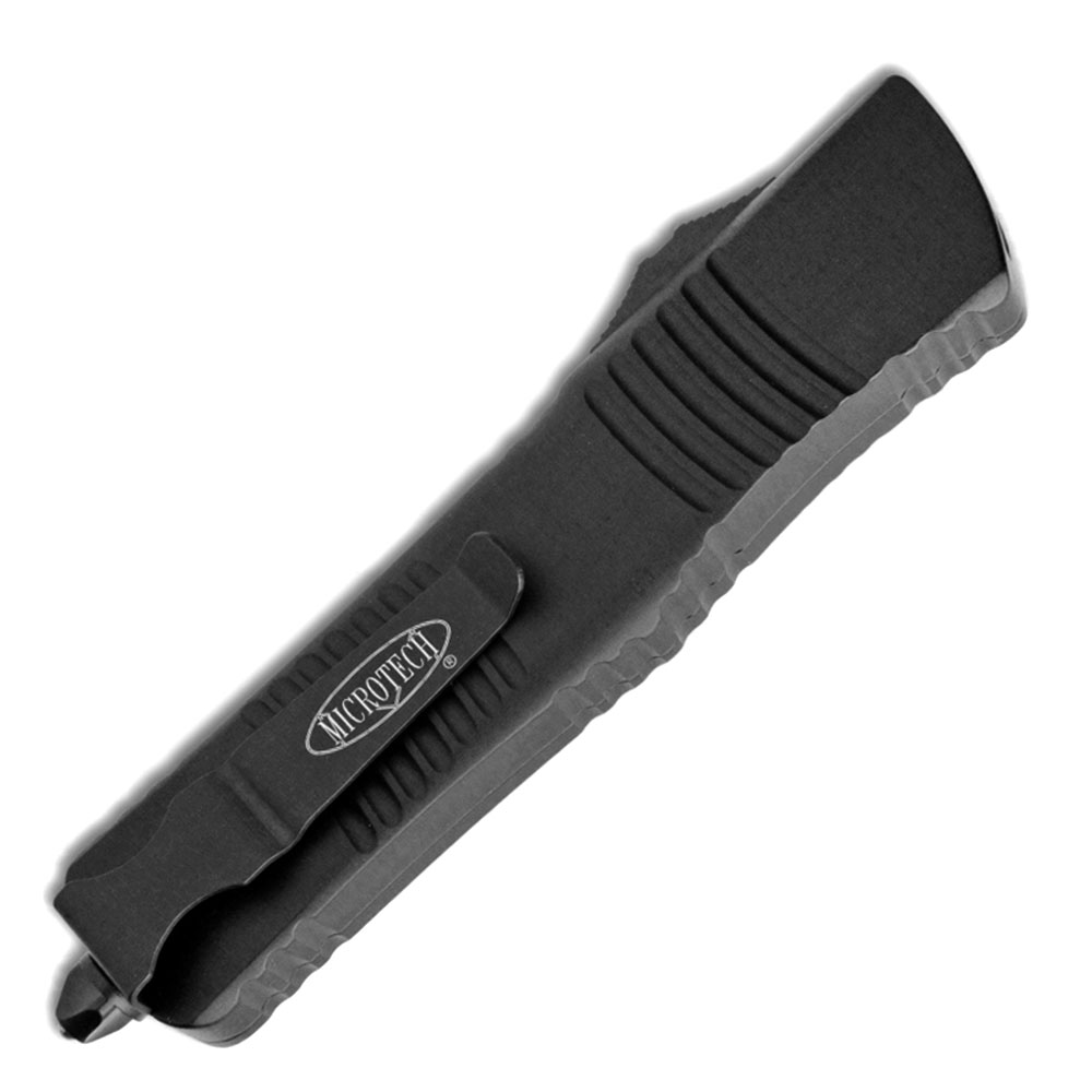 This model features a black anodized 6061-T6 aluminum with grooves and jimping. Black finished M390 stainless steel tanto blade. Black tactical finished hardware, reversible pocket clip, and glass breaker. The pocket clip features the Microtech logo. The blade has the Microtech logo and model information. The handle has the Microtech Claw logo, serial number, and production date. Brand new in box.