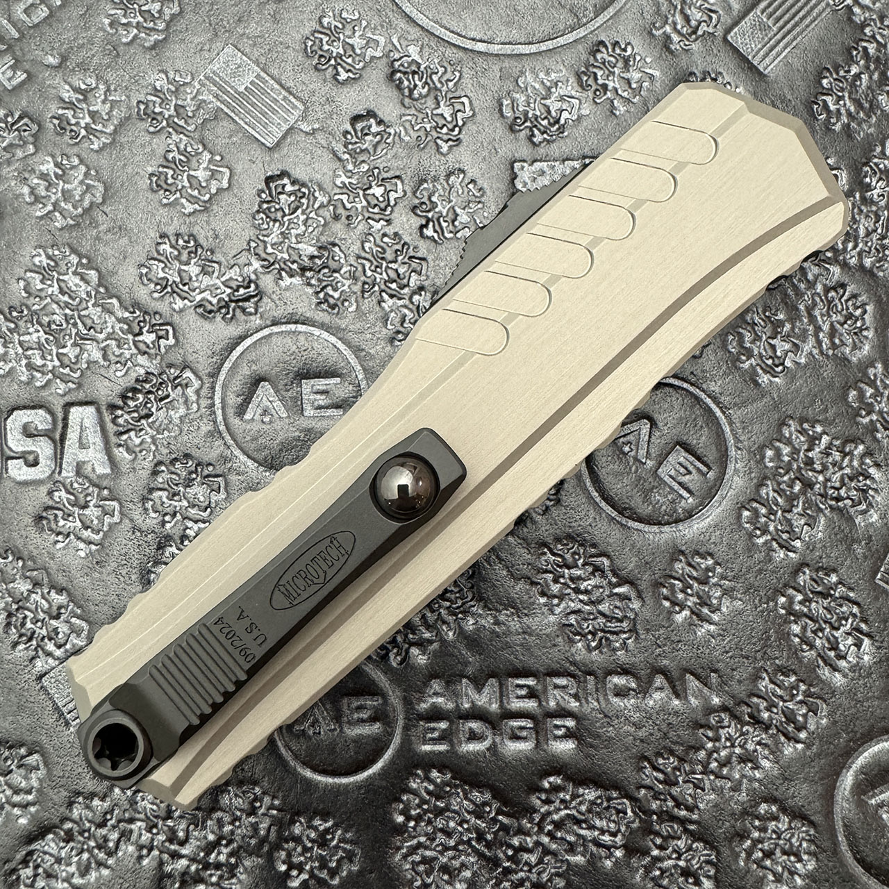 The Microtech Cypher sees the return of a fan favorite OTF with cutting edge advancements on the original design. The classic Cypher has been reengineered inside and out, setting a new standard for out the front technology. The latest innovative dual fuel drivetrain allows for effortless actuation and the smoothest action ever seen on an OTF. The jimping on the chassis adds an element of style while providing maximum grip, and the 6AL4V pocket clip with ceramic detent gives the user secure and accessible carry options. The screwless body and integral glass breaker give it a more streamlined look, and the updated button pocket design reduces friction and facilitates debris displacement.With its relatively compact size and ease of deployment, the redesigned Cypher sets a new benchmark for Microtech’s renowned combination of style and utility on our out the front lineup.