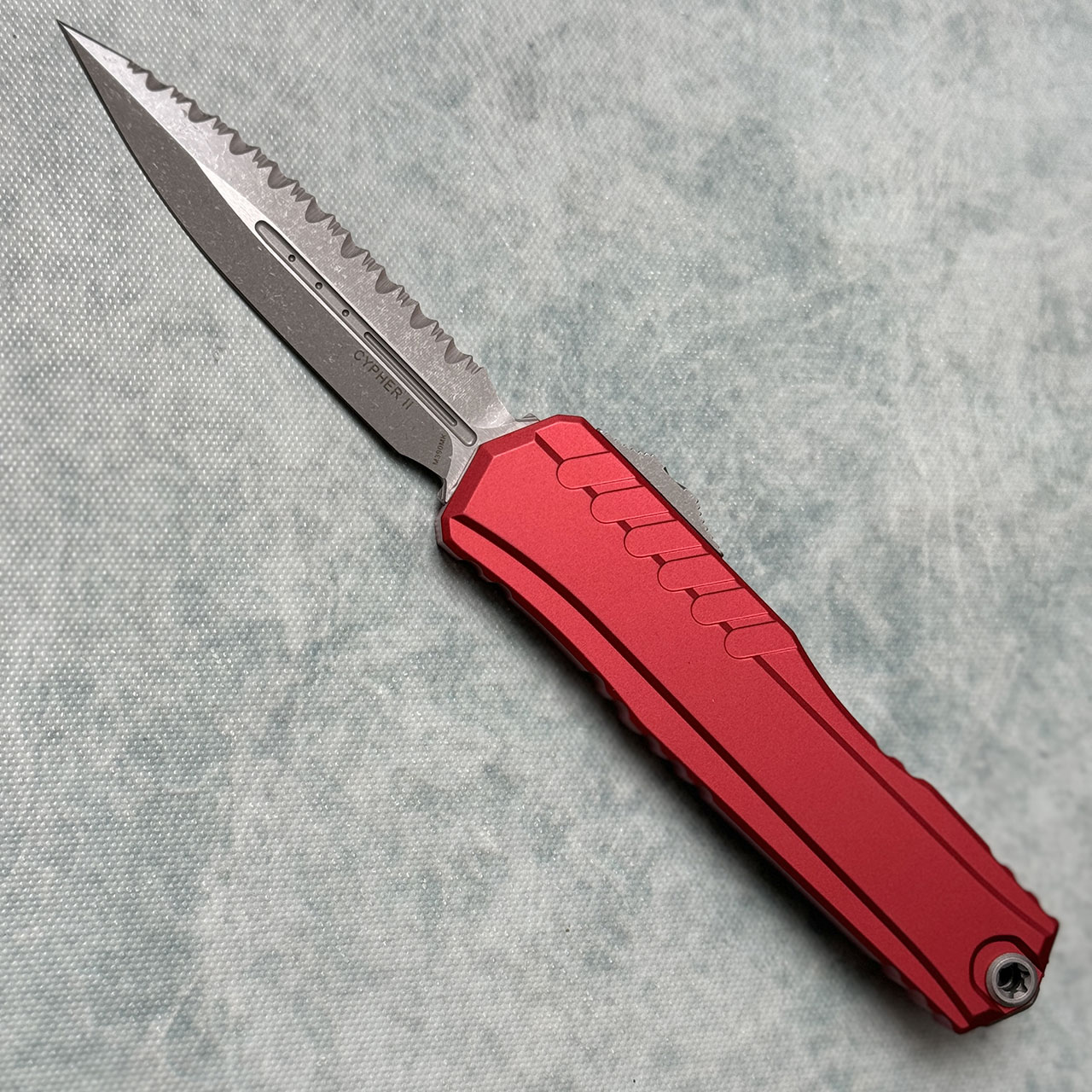 Microtech Cypher II D/E Red Apocalyptic Full Serrated 1242-12APRD