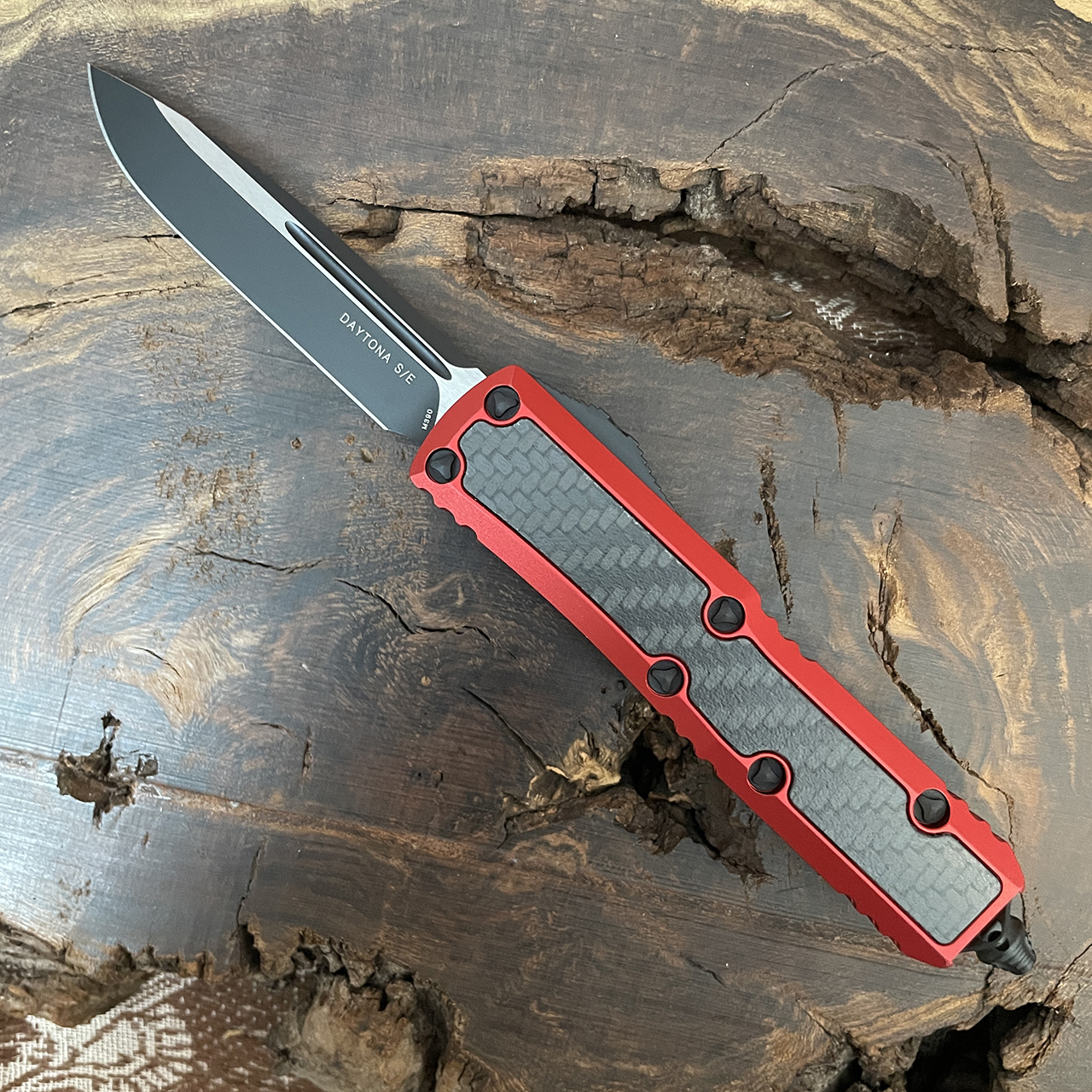 Microtech Daytona S/E Red w/ Carbon Fiber Inlay Black Standard Signature Series 124-1RDCFIS