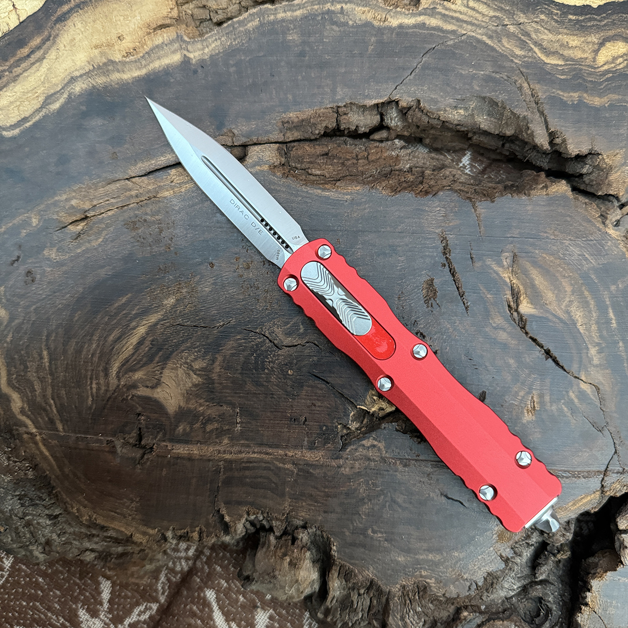 The all new Dirac from Microtech is the first double action knife in the lineup with a cover firing slider. A new ergonomic chassis was designed with curved lines similar to the HALO for a slightly different feel, compared to the other handles Microtech produces. The design was researched for this particular O.T.F. and then taken to a new level by applying Microtech's signature ultra high tolerances. Other things like proprietary hardware, an innovative internal mechanism, and glass breaker complete the package. With an overall length of 7.25 inches, the Dirac is just right for an everyday knife.