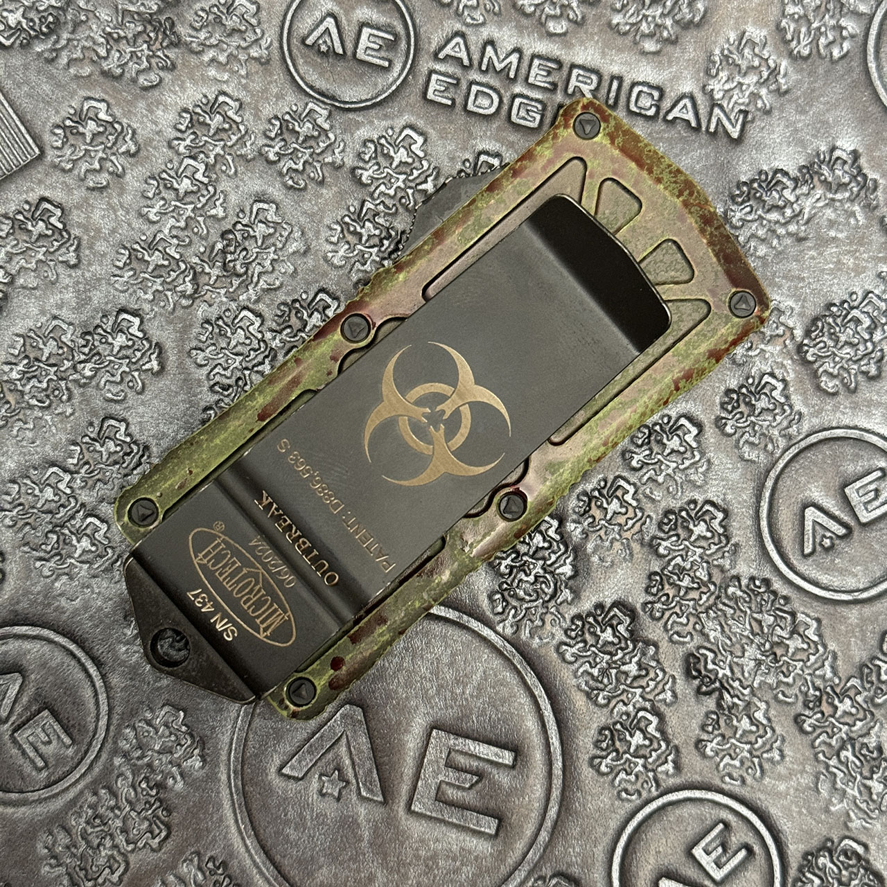 Microtech Exocet T/E Outbreak Handle Apocalyptic Standard Blade Cali Legal OTF Money Clip Signature Seried 158-1OBS