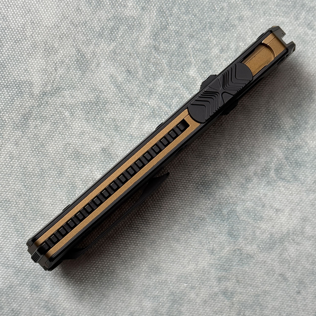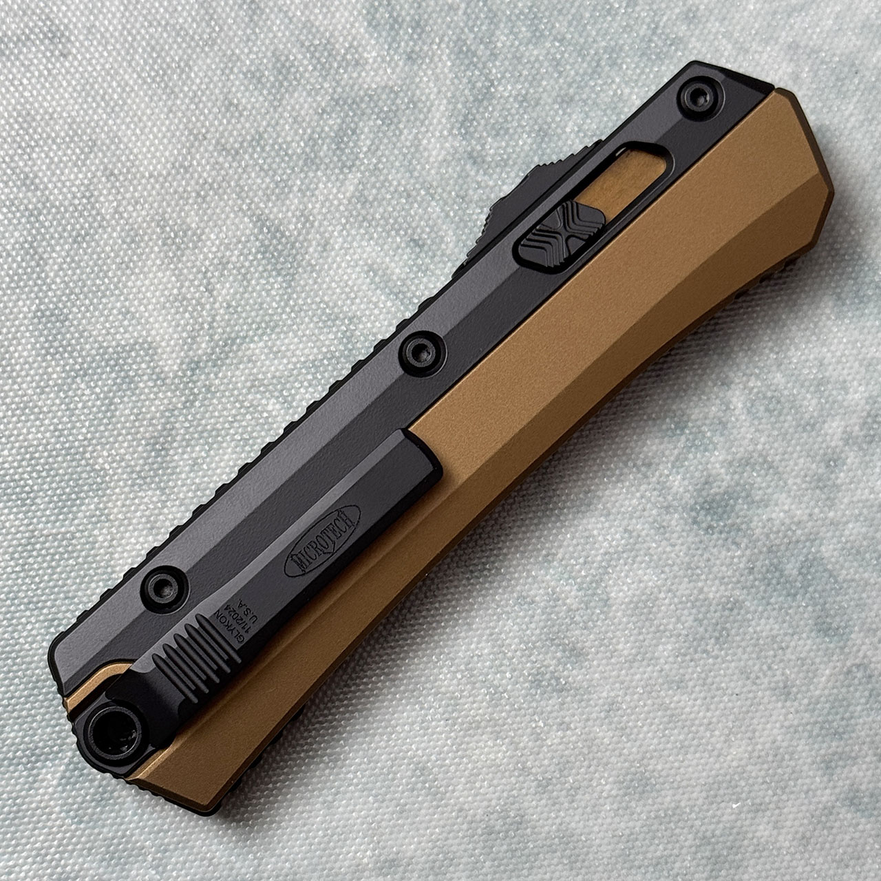 This model has Tan/black anodized 6061-T6 aluminum handle. Black finished M390 stainless steel tanto blade with standard cutting edge. Black finished hardware, reversible pocket clip, and lanyard hole. The clip features the model information, Microtech logo, and production date all deep engraved. Brand new in box.
