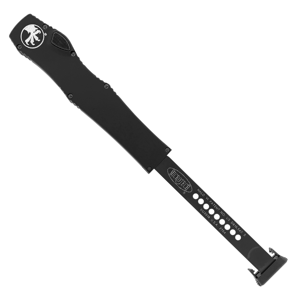 A long time staple in the Microtech OTF lineup, the H.A.L.O. (High Altitude Low Opening) is known for its lighting fast blade deployment. This single action OTF fires with the touch of a button and retracts by pulling the charging handle. The unique shape and slender design of the handle aids concealability. The Microtech Halo VI is the next generation of the venerable HALO series and it is better than ever. It is now a little more beefy and has a couple new features including easy to use safety latches on the charging bar and a safety integrated into the button. An elegant design in a hard hitting package made with top quality materials, what else can you ask for!