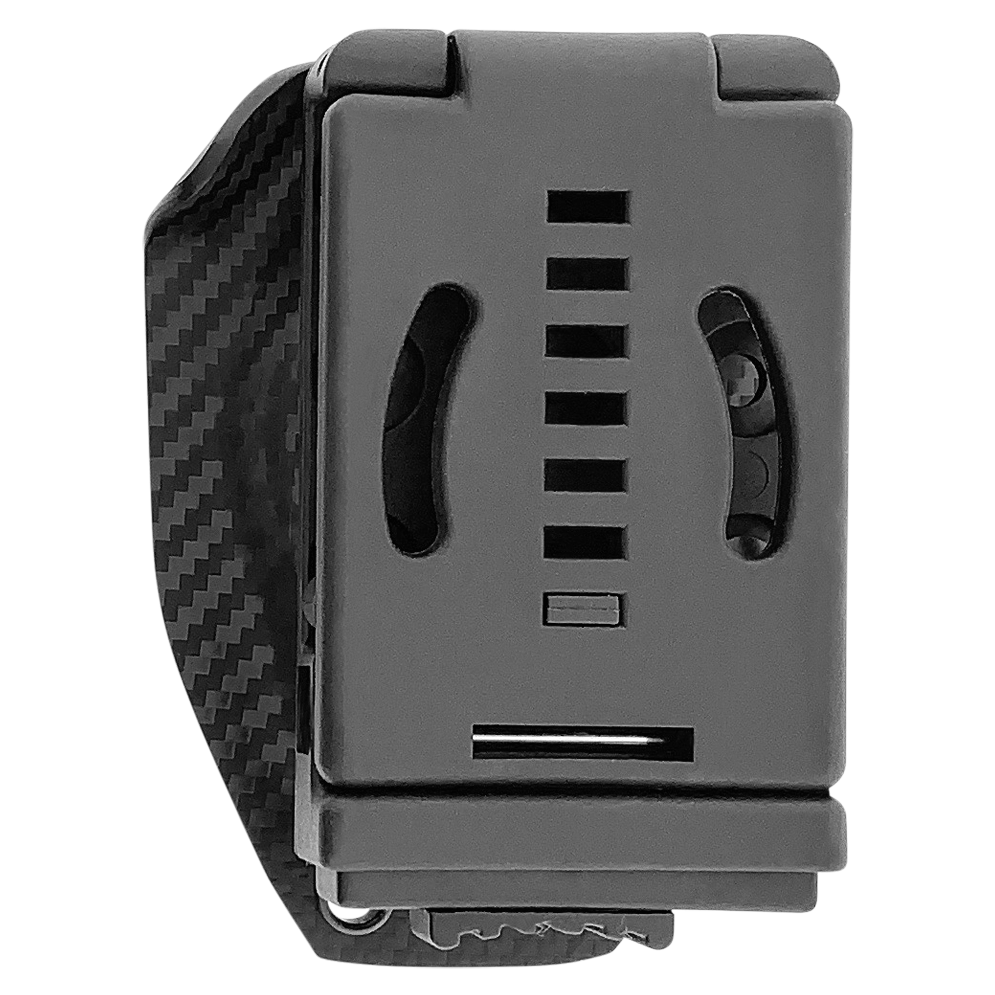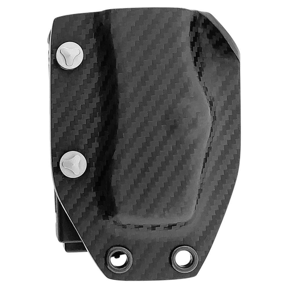 This model features a black anodized 6061-T6 aluminum handle. Black DLC finished M390 stainless steel tanto blade with a standard edge. Black DLC finished hardware and charging bar. The front of the handle features the Microtech Claw logo. The blade has the Microtech logo and model information. The charging bar has the Microtech logo, model information, production date, and serial number. Brand new in box with carbon fiber kydex tactical sheath.