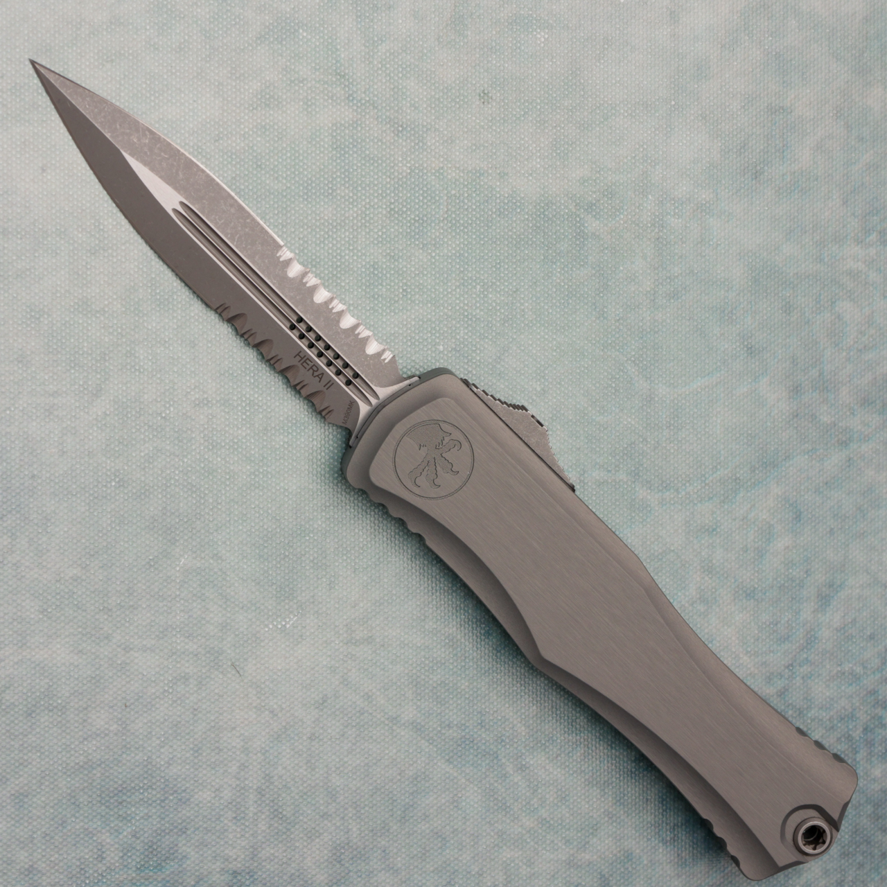 Microtech Hera II D/E Natural Clear Apocalyptic Part Serrated 1702-11APNC (Consignment)