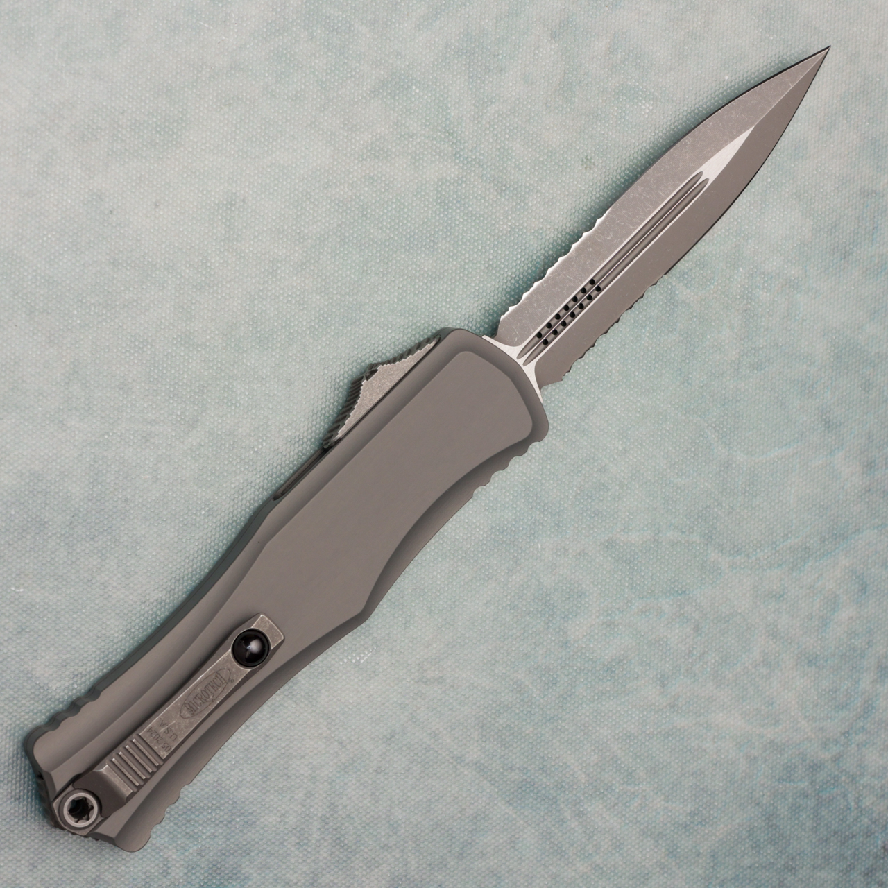 Microtech Hera II D/E Natural Clear Apocalyptic Part Serrated 1702-11APNC