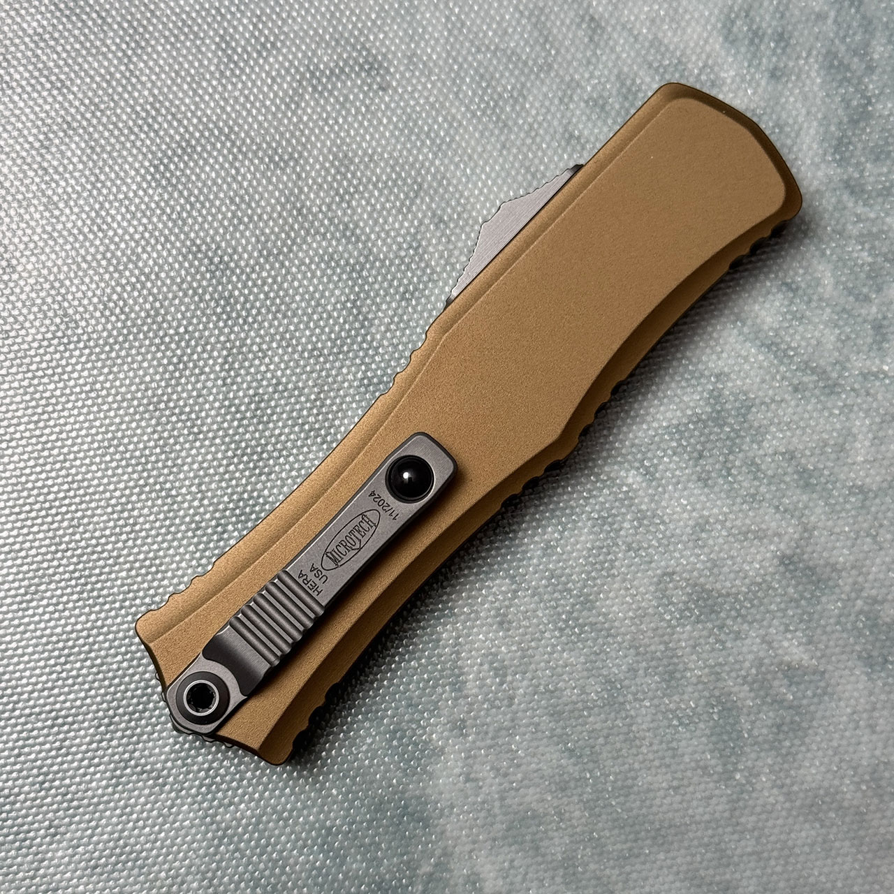 Microtech Hera II Mini D/E Tan Stonewash Full Serrated 1702M-12TA
