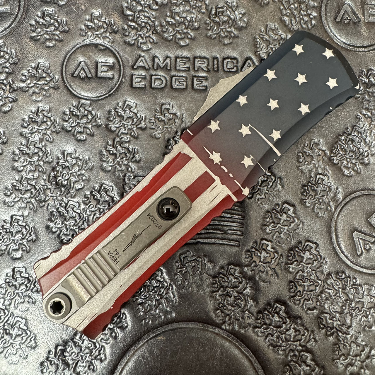 Microtech Hera II Mini Recurve Signature Series USA Flag Apocalyptic Standard 1705M-10FLAGS
