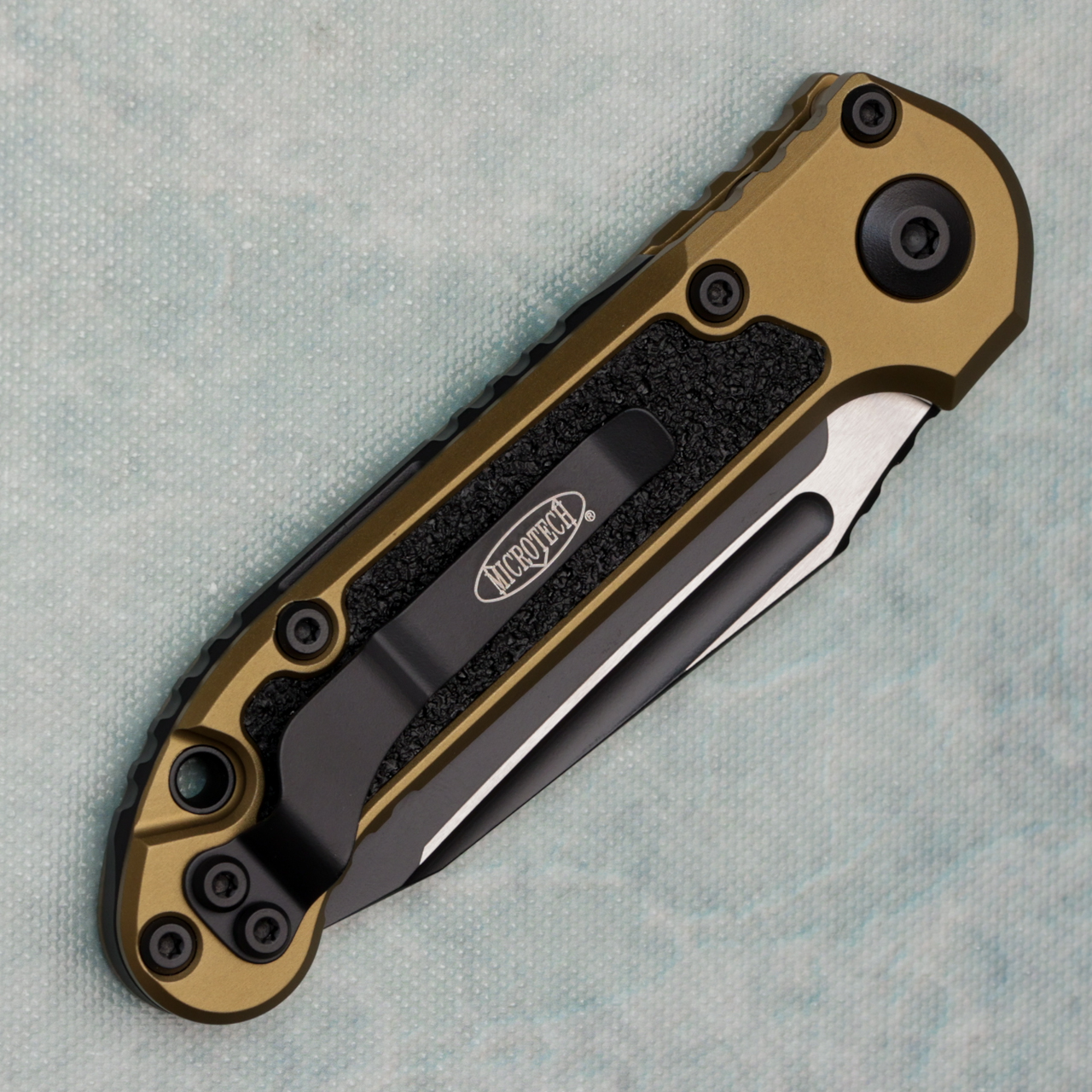 This model features an od green anodized 6061-T6 aluminum handle with black 3M grip inlays. Black finished M390MK stainless steel tanto blade with a standard cutting edge. Torx hardware and tip up pocket clip. The blade is marked with the model information and Microtech logo. The pocket clip is also marked with the Microtech logo. Brand new in box.