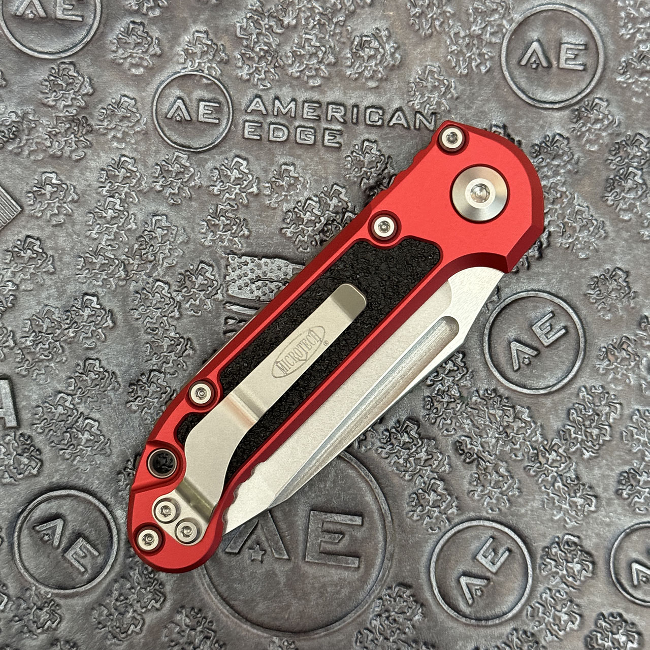 This model features a red anodized 6061-T6 aluminum handle with black 3M grip inlays. Stonewashh finished M390MK stainless steel tanto blade with a standard cutting edge. Torx hardware and tip up pocket clip. The blade is marked with the model information and Microtech logo. The pocket clip is also marked with the Microtech logo. Brand new in box.