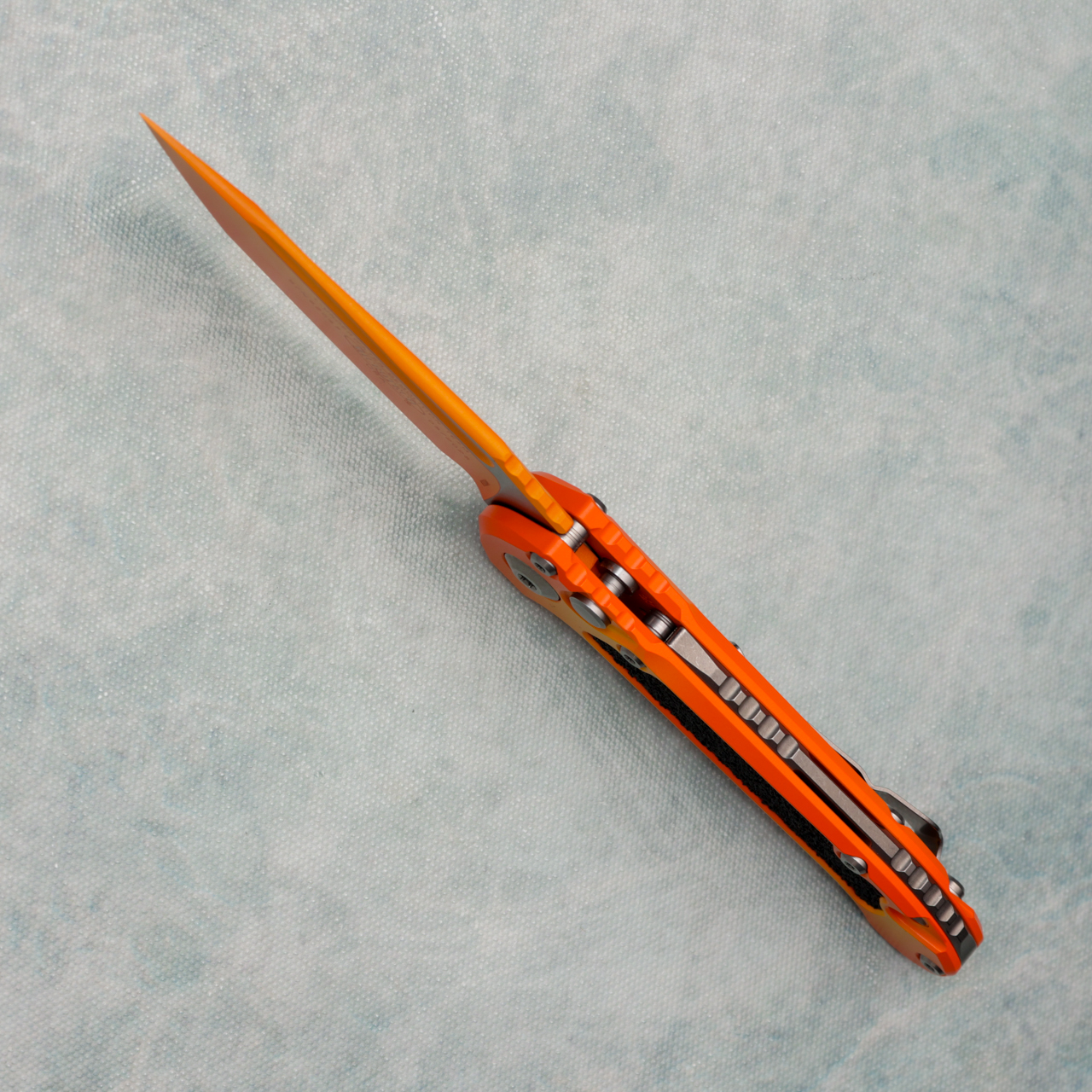 This model features a sunrise 6061-T6 aluminum handle with black 3M grip inlays. Sunrise finished M390MK stainless steel tanto blade with a standard cutting edge. Torx hardware and tip up pocket clip. The blade is marked with the model information and Microtech logo. The pocket clip is also marked with the Microtech logo. Brand new in box.