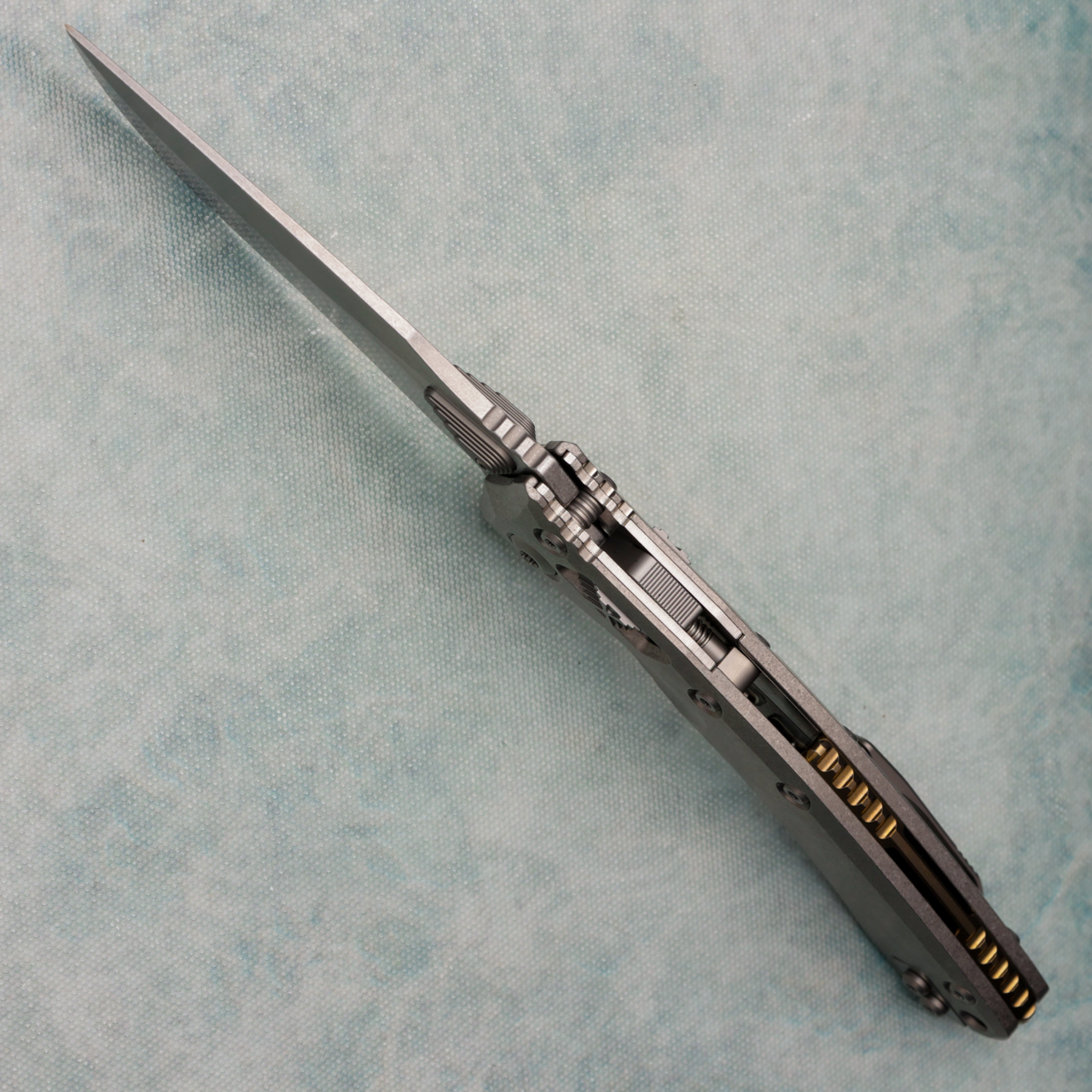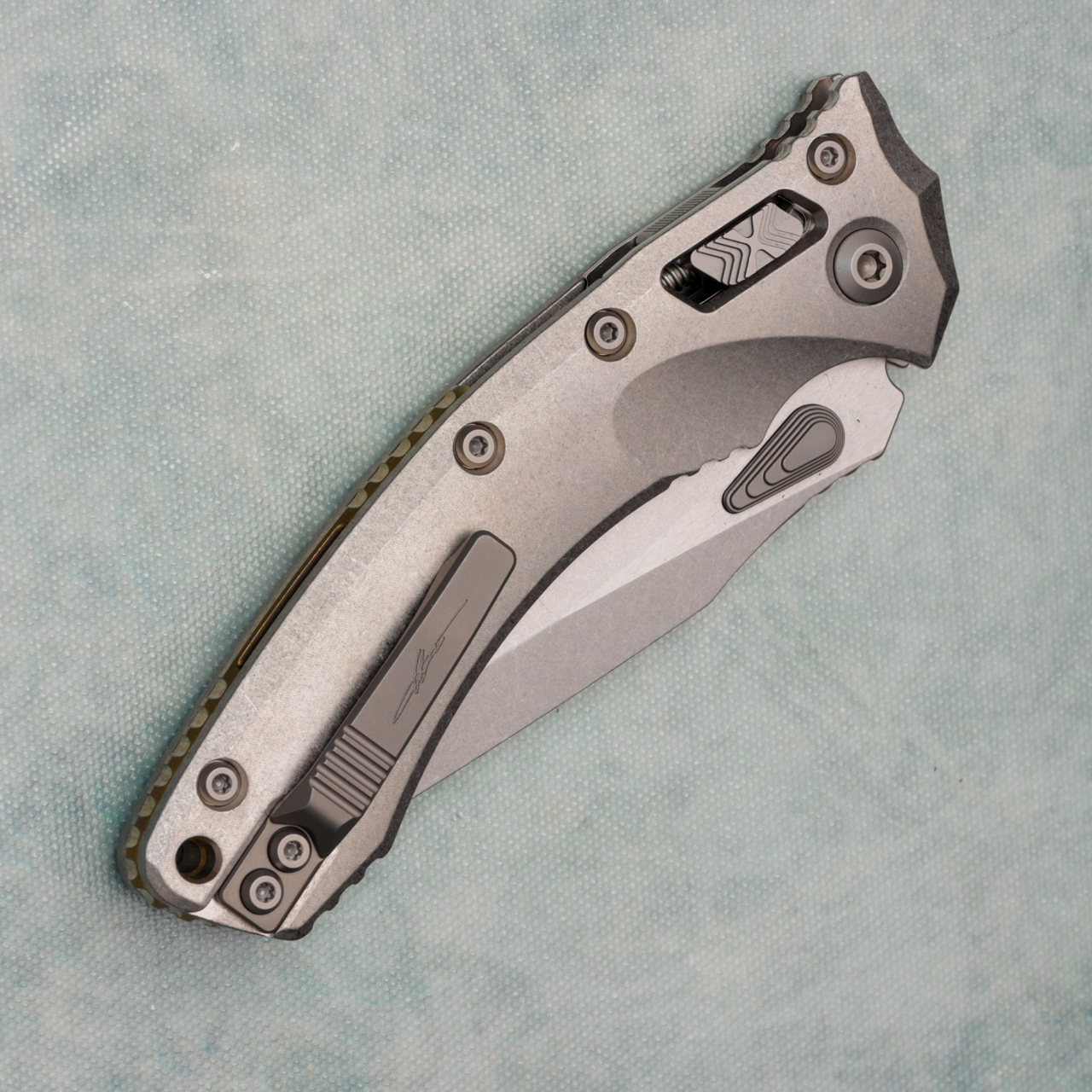 This Signature Series model features stonewash titanium handle scales. Stonewash finished M390MK stainless steel clip point blade. Complete with a bronze titanium backspacer. Brand new in box.