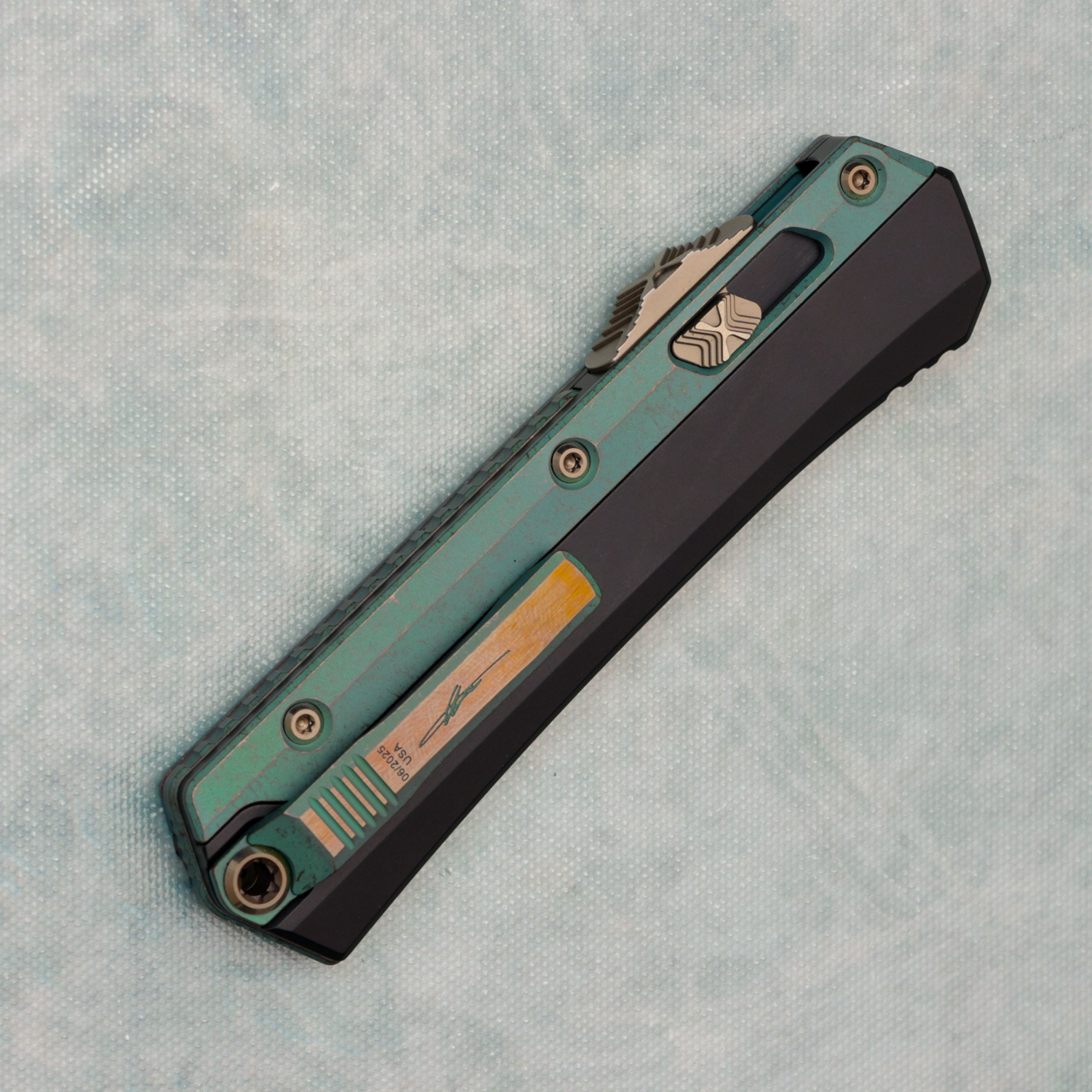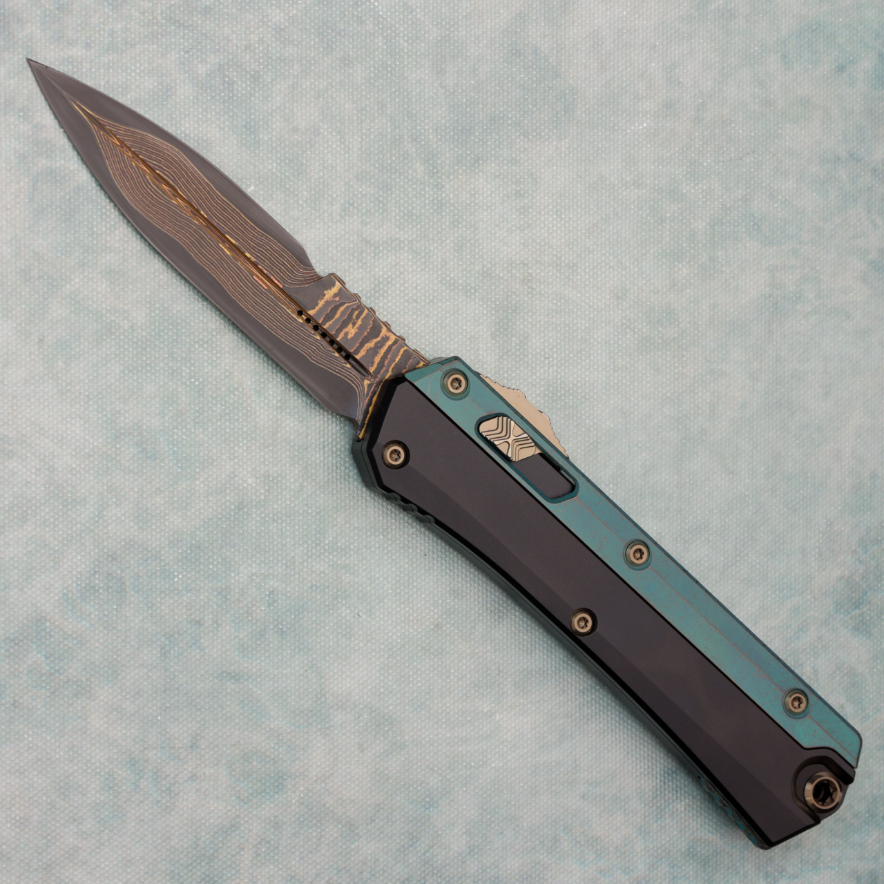 Microtech Marfione Select Glykon Bayonet Hefted Alloy w/ Antique Green Accents Baker Forge Brute De Forge Coppermai Damascus Blade 184-16MS4