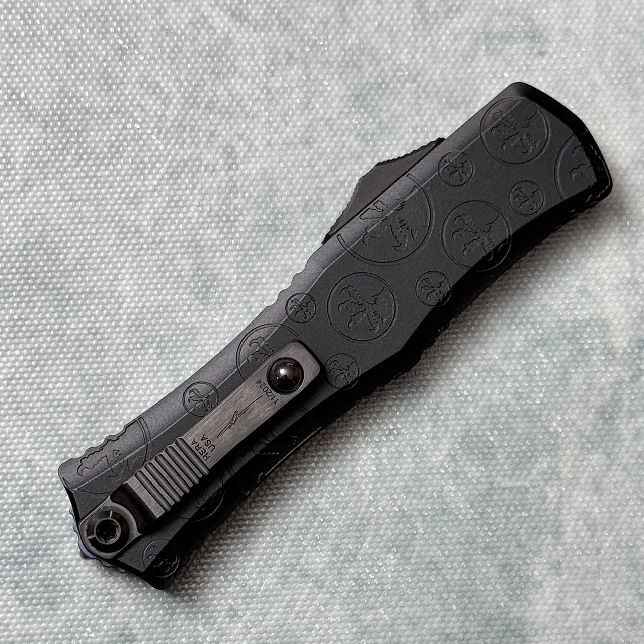 The Microtech Mini Hera II sets a higher standard for the perfect blend of aesthetic and utility that was introduced by the original Hera. Smaller than both the origianl hera and the Hera II, the mini Hera II has a streamlined design of the original with dramatic improvements. Redesigned 6AL4V pocket clip and glass breaker. The ultra-smooth action of the reengineered dual fuel drivetrain allows for effortless deployment, and the innovative button pocket design reduces friction and facilitates debris displacement. The size and practicality of the mini Hera II combined with its updated style and functionality make this the perfect addition to your everyday carry.