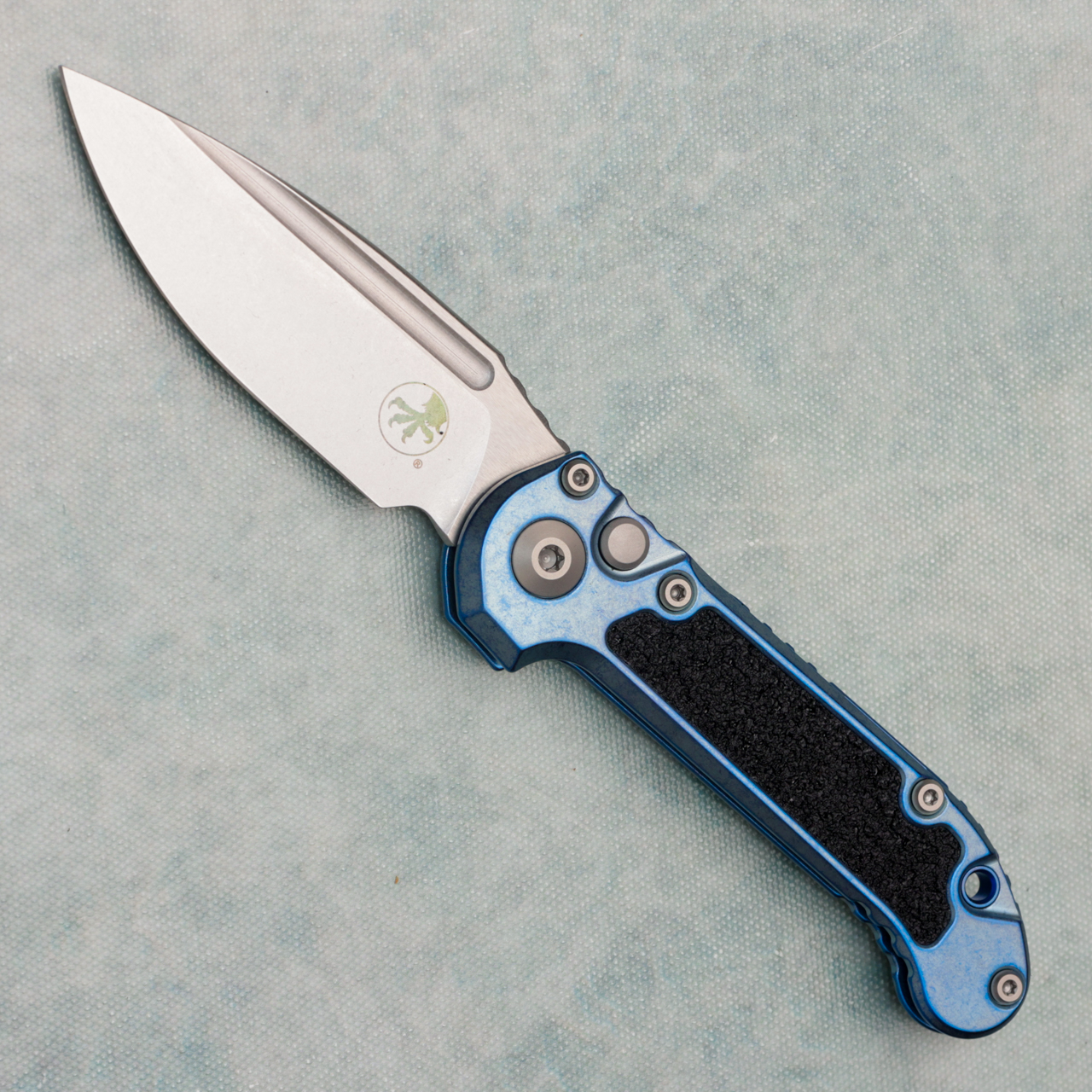 Microtech Marfione Select LUDT S/E Gen III Ice Blue Titanium Handle w/ Black Grip Tape Inlays Stonewash Standard Blue Accent 1135-10MS12