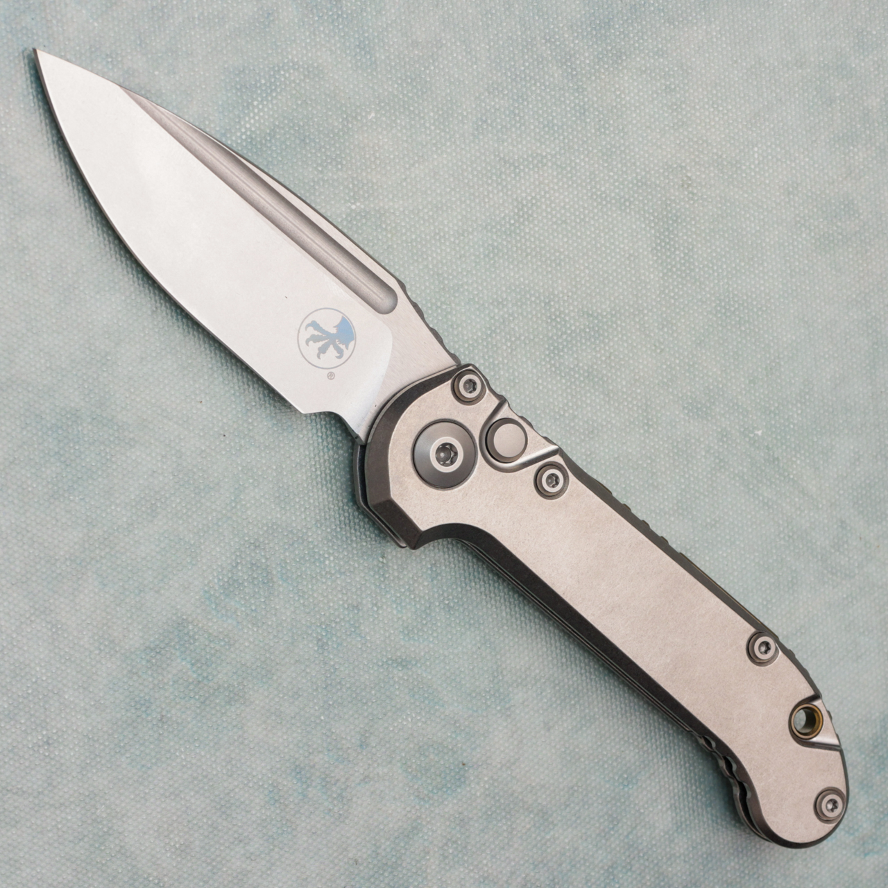 This model features an stonewash titanium handle. Stonewash finished M390MK stainless steel clip point blade with a standard cutting edge. Bronze titanium backspacer. Torx hardware and tip up pocket clip. Brand new in box.