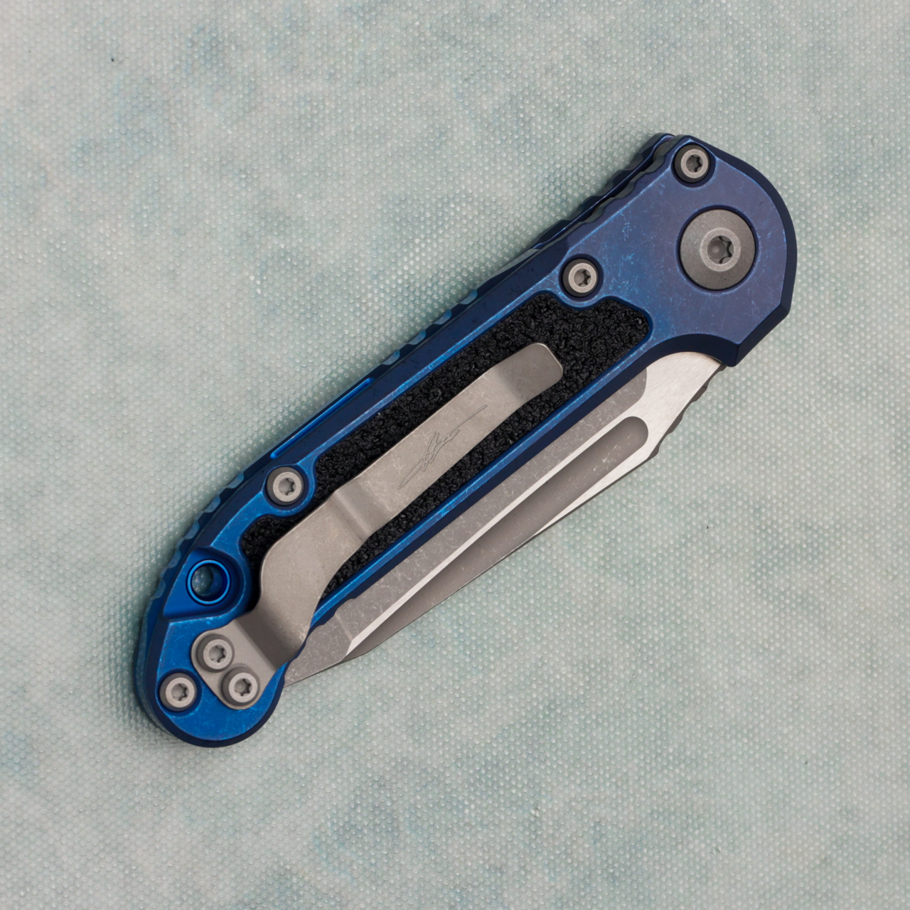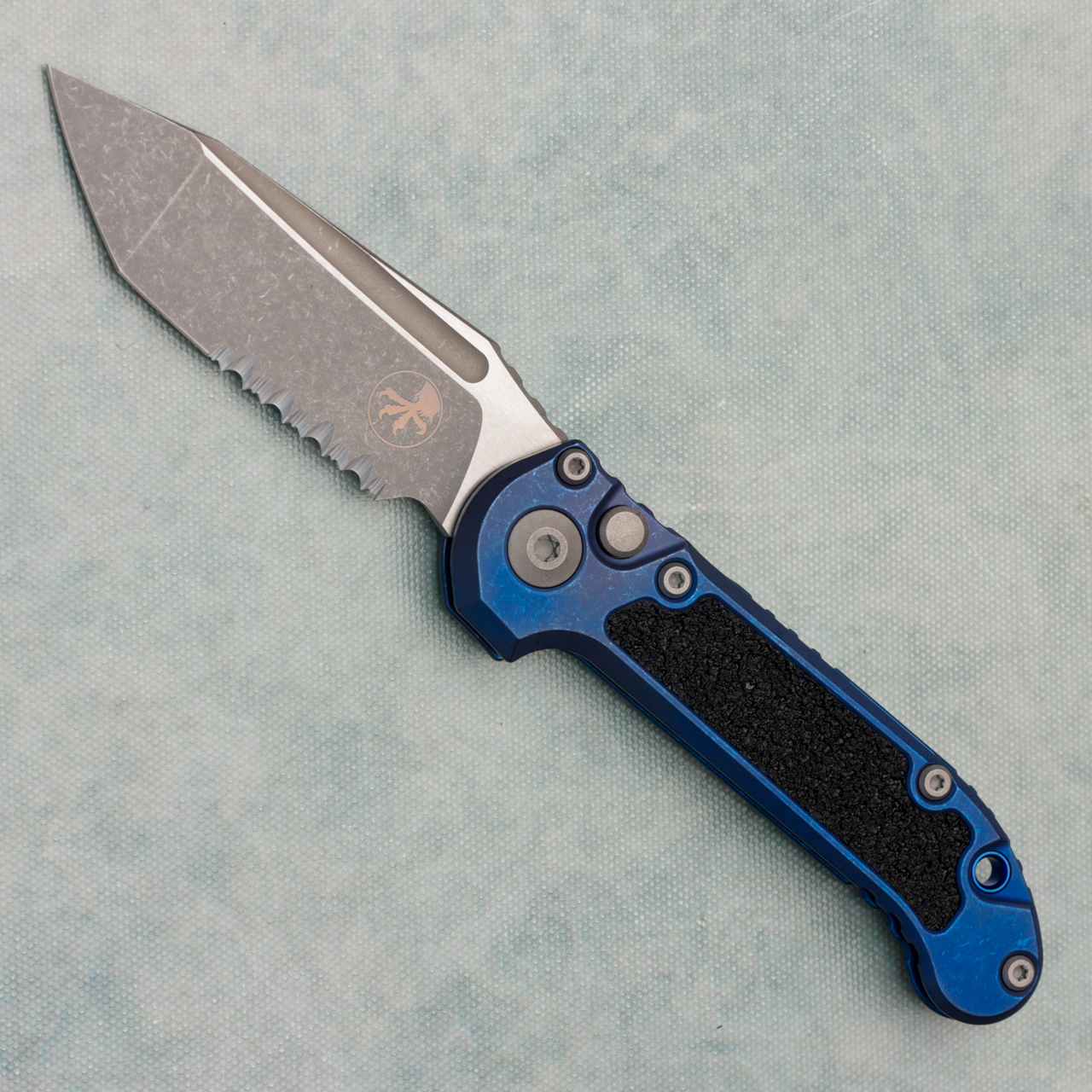 Microtech Marfione Select LUDT T/E Gen III Antique Blue Titanium Handle w/ Black Grip Tape Inlays Apocalyptic Part Serrated 1136-11APMS4