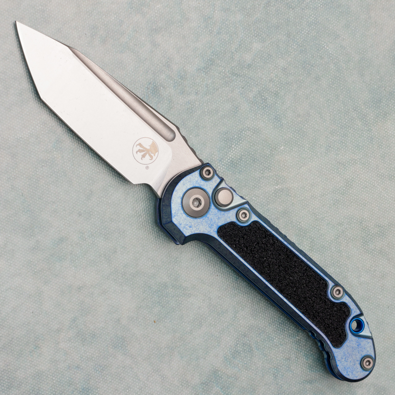 Microtech Marfione Select LUDT T/E Gen III Ice Blue Titanium Handle w/ Black Grip Tape Inlays Stonewash Standard Blue Accent 1136-10MS12