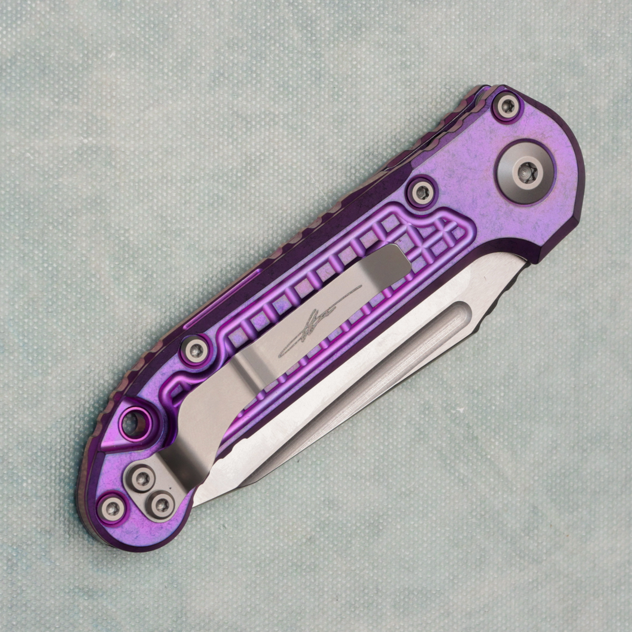 Microtech Marfione Select LUDT T/E Gen III Purple Haze Frag Titanium Handle Stonewash Full Serrated Purple Accent 1136-12FRMS5