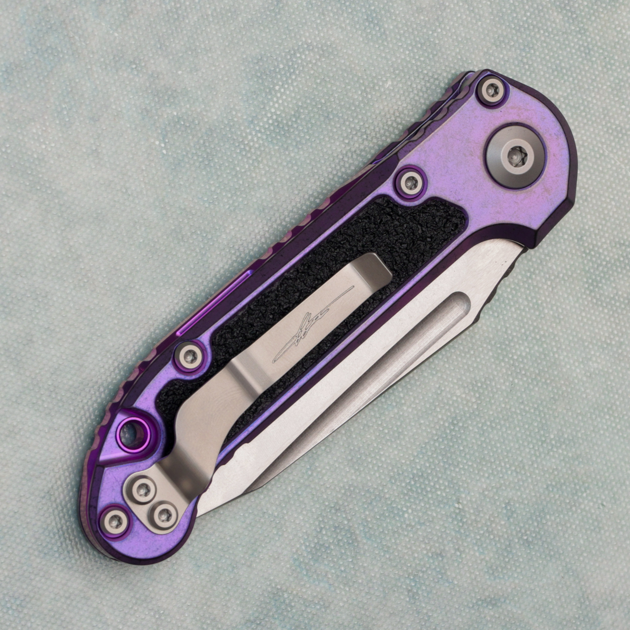 Microtech Marfione Select LUDT T/E Gen III Purple Haze Titanium Handle w/ Black Grip Tape Inlays Stonewash Standard Purple Accent 1136-10MS10