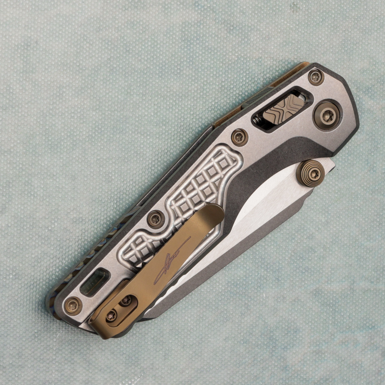 Microtech Marfione Select MSI Mini RAM-LOK Frag Titanium Handle Stonewash Standard Flamed Titanium Accent Bronzed Hardware 210M-10FRMS5