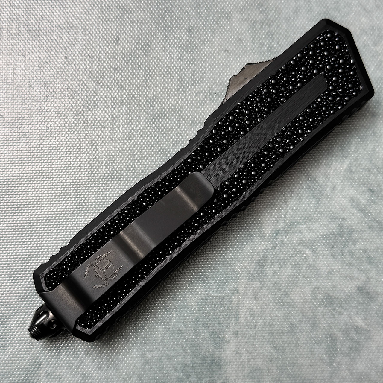 The Scarab is back in this new bigger and beefier model, the Scarab II. Improvements include a bigger overall size, wider chassis, and wider button. A flow through design with relief cuts in the blade and the butt end of the handle to improve reliability and allow under water firing. Standard torx hardware for easier maintenance. A perfect blend of each unique Microtech knife packed into a reliable and robust double action OTF package!