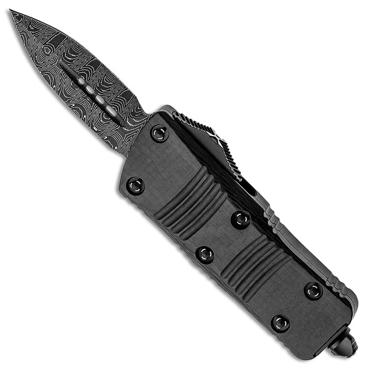 Microtech Mini Troodon D/E Carbon Fiber Top Damascus Standard Signature Series 238-16CFS