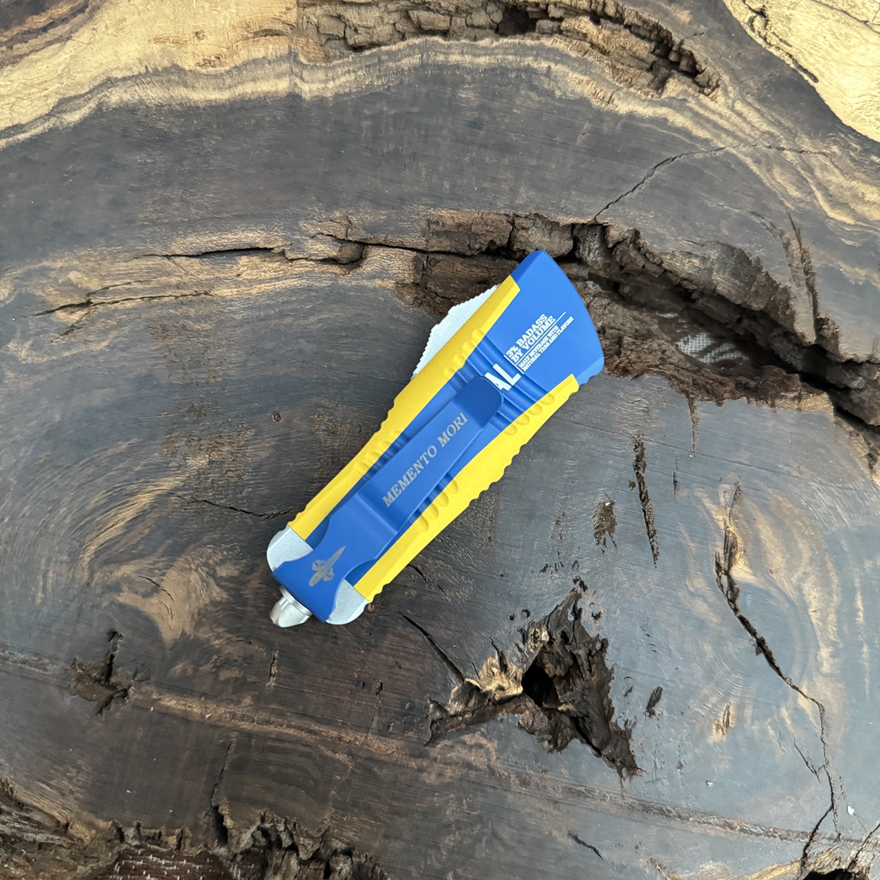Microtech's Troodon knife has been shortened up and is now available in this California legal Mini Troodon! Named after the Troodon dinosaur, this knife was Microtech's 2006 flagship out-the-front knife design. The Troodon handles feature grooves for added grip-ability. The Troodon is similar in size to a UTX-85 but with a wider and slimmer handle that feels more robust. Recently released but this one has quickly become a favorite EDC among people that need a small knife wit a solid feel!