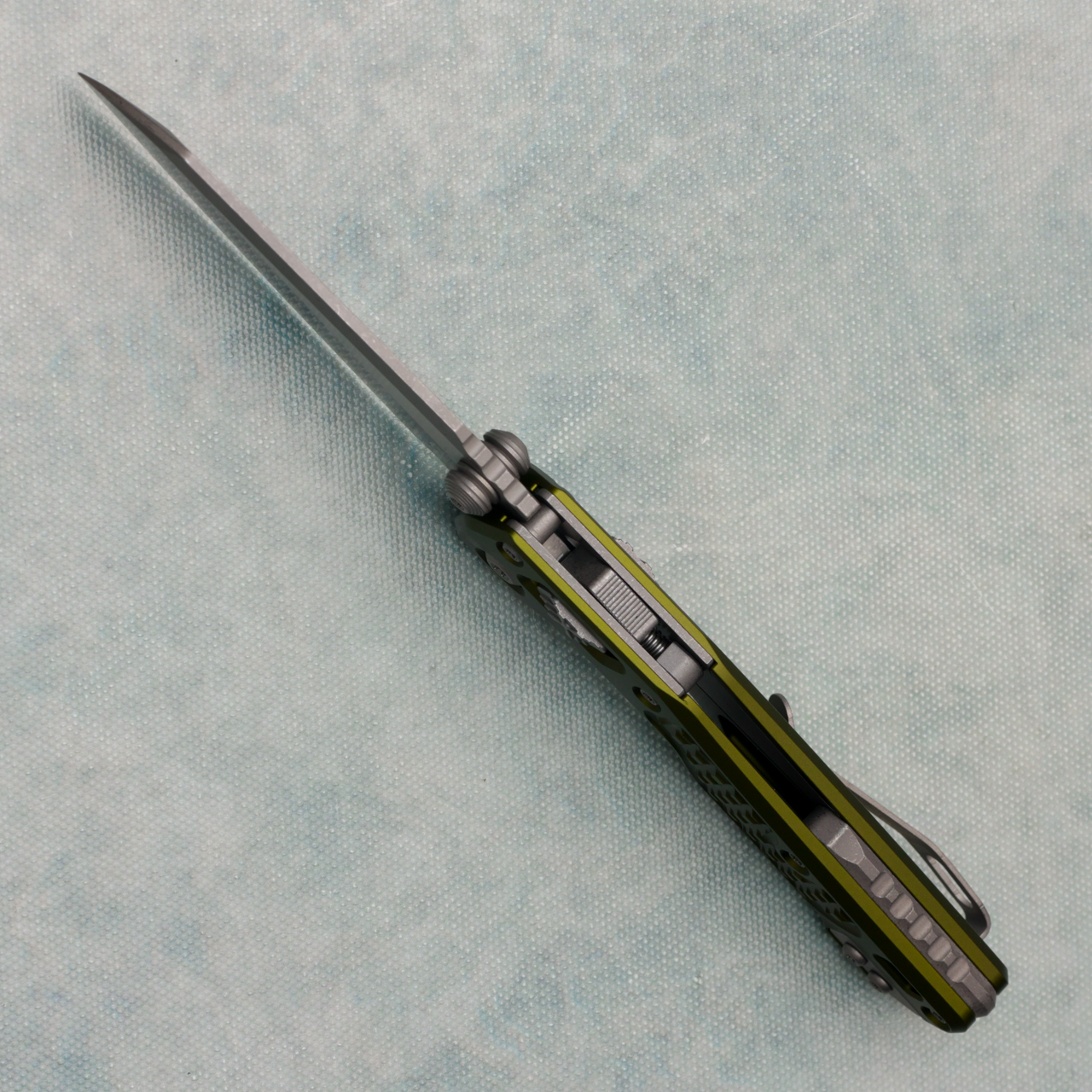 This model has frag od green aluminum handles. Apocalyptic finished M390MK single edge blade. Complete with a titanium backspacer and reversible pocket clip for left-hand carry. Brand new in box.