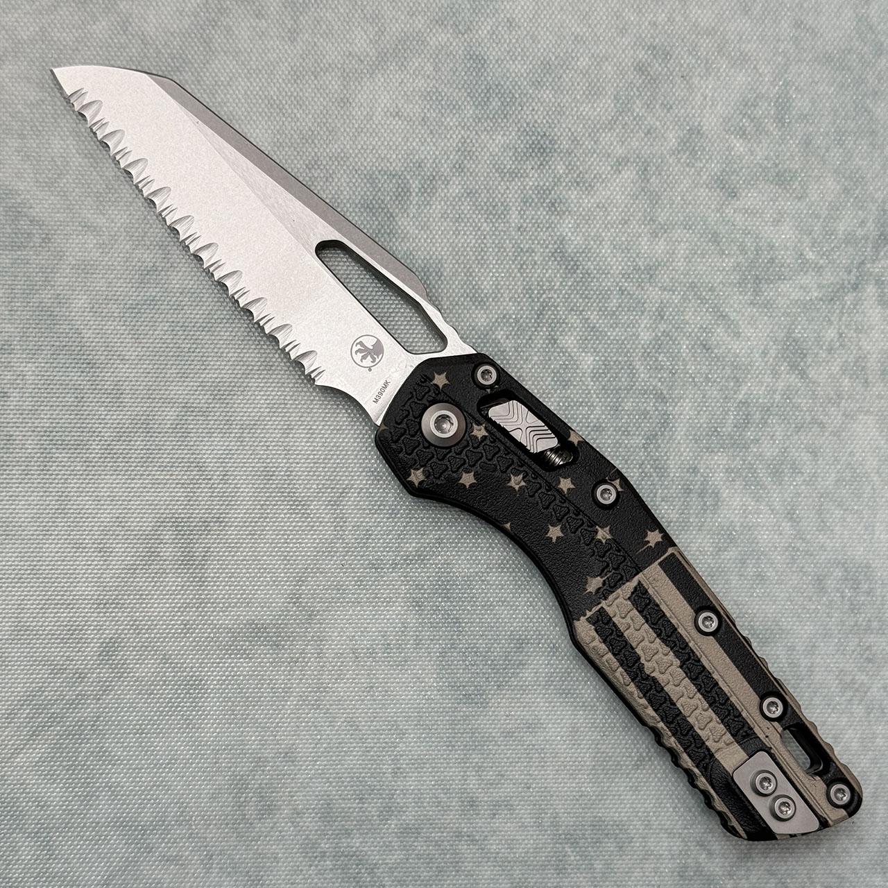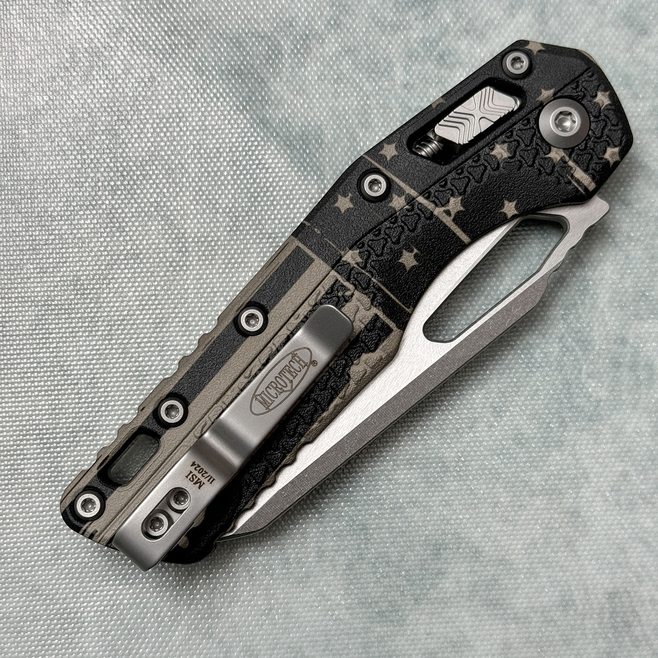 Microtech MSI RAM-LOK S/E Flag Tri-Grip Polymer Stonewash Full Serrated 210T-12PMFLAG