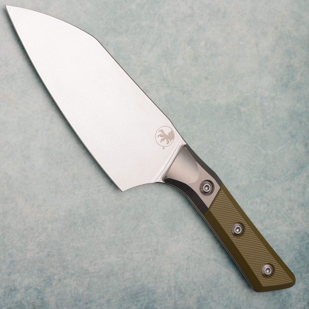 Microtech Santoku 6" Knife OD Green G-10 Handle w/ Bead Blast Titanium Bolster Stonewash Standard Blade 3200B-10OD