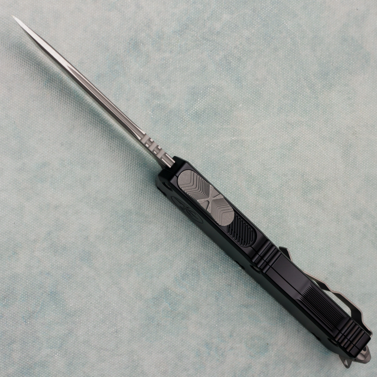 The most popular heavy-duty Microtech OTF, the Scarab II, is back with innovative upgrades. The newly updated Scarab II retains the characteristics of its predecessor in both size and style while setting a new standard for OTF technology. On the surface, the new Scarab II is reminiscent of the previous generation. The classic aesthetics of the traction inserts and Torx screw design on the chassis, as well as the familiar glass breaker and pocket clip, bring back one of our favorite OTF styles. The internals, however, put the new Scarab II in a class of its own. The revolutionary dual fuel drivetrain system not only allows for effortless deployment, but the dual spring design propels the blade forward with enough force that deploying the knife underwater does not slow the action. The updated button pocket design reduces friction and facilitates debris displacement, reducing the need for frequent maintenance and cleaning. The latest innovation combined with a timeless Microtech look sets a new standard for hard-use, sizable OTF knives.