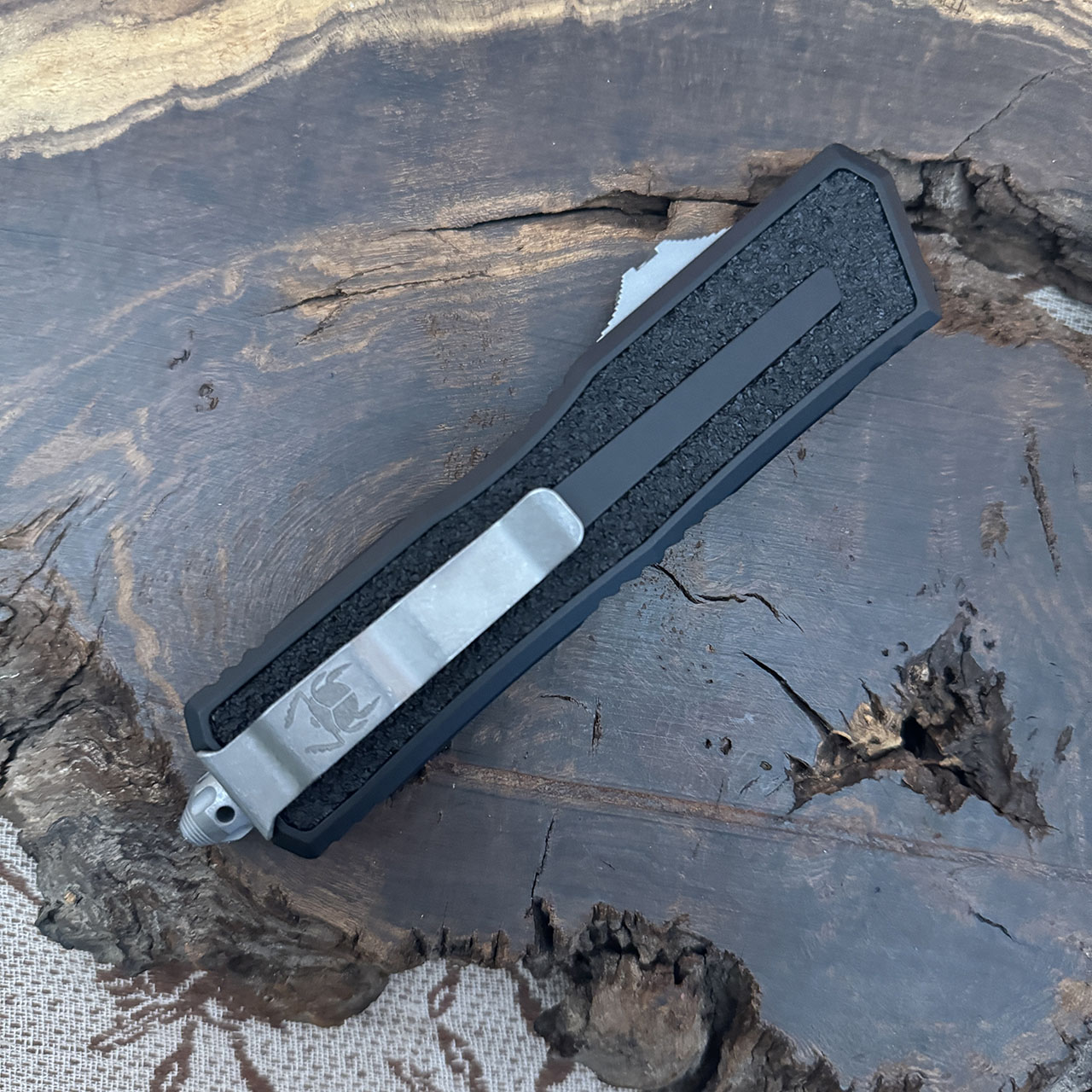 The most popular heavy-duty Microtech OTF, the Scarab II, is back with innovative upgrades. The newly updated Scarab II retains the characteristics of its predecessor in both size and style while setting a new standard for OTF technology. On the surface, the new Scarab II is reminiscent of the previous generation. The classic aesthetics of the traction inserts and Torx screw design on the chassis, as well as the familiar glass breaker and pocket clip, bring back one of our favorite OTF styles. The internals, however, put the new Scarab II in a class of its own. The revolutionary dual fuel drivetrain system not only allows for effortless deployment, but the dual spring design propels the blade forward with enough force that deploying the knife underwater does not slow the action. The updated button pocket design reduces friction and facilitates debris displacement, reducing the need for frequent maintenance and cleaning. The latest innovation combined with a timeless Microtech look sets a new standard for hard-use, sizable OTF knives.