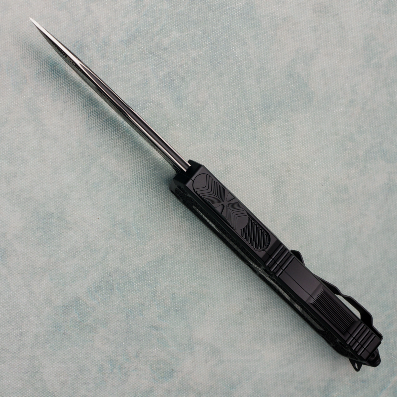 The most popular heavy-duty Microtech OTF, the Scarab II, is back with innovative upgrades. The newly updated Scarab II retains the characteristics of its predecessor in both size and style while setting a new standard for OTF technology. On the surface, the new Scarab II is reminiscent of the previous generation. The classic aesthetics of the traction inserts and Torx screw design on the chassis, as well as the familiar glass breaker and pocket clip, bring back one of our favorite OTF styles. The internals, however, put the new Scarab II in a class of its own. The revolutionary dual fuel drivetrain system not only allows for effortless deployment, but the dual spring design propels the blade forward with enough force that deploying the knife underwater does not slow the action. The updated button pocket design reduces friction and facilitates debris displacement, reducing the need for frequent maintenance and cleaning. The latest innovation combined with a timeless Microtech look sets a new standard for hard-use, sizable OTF knives.