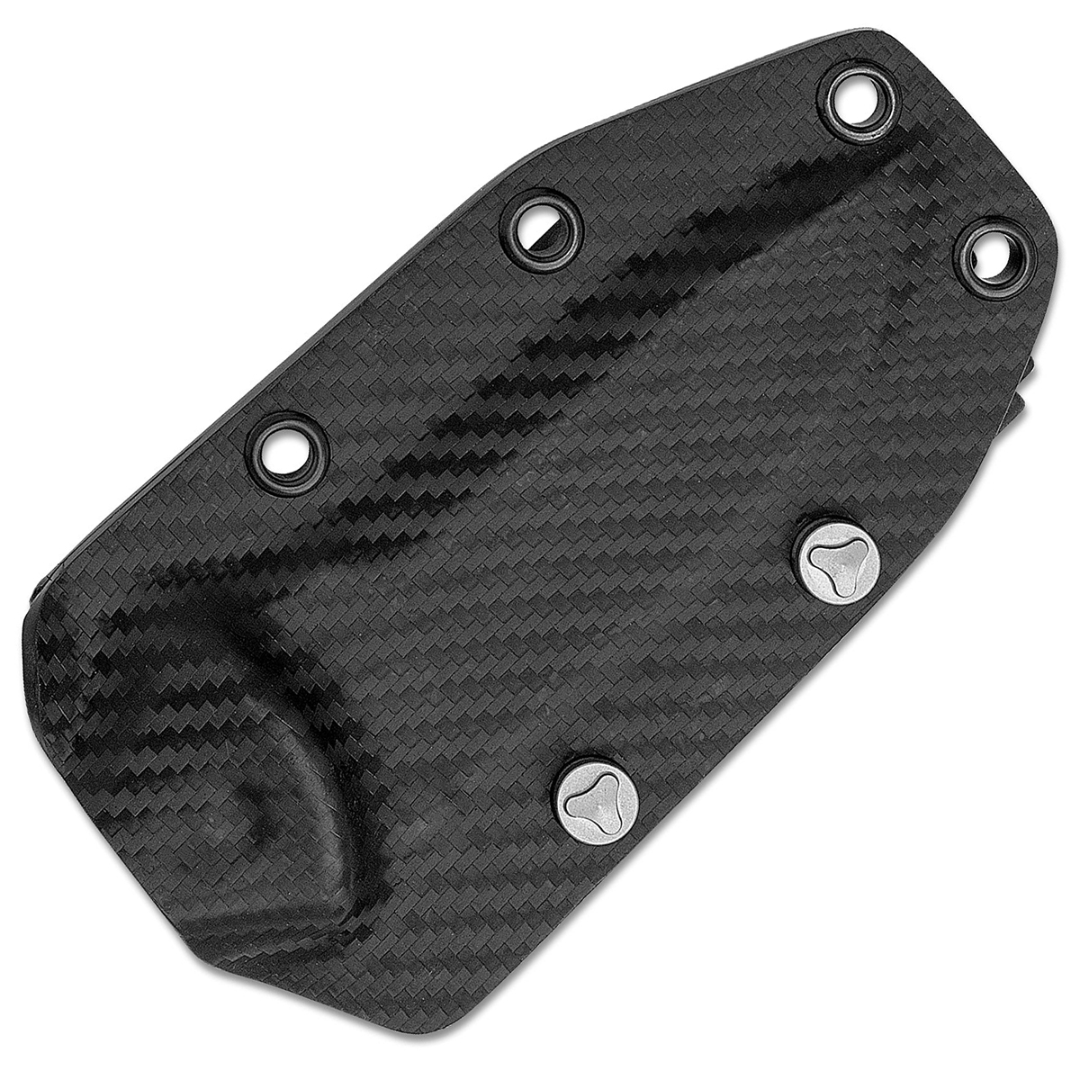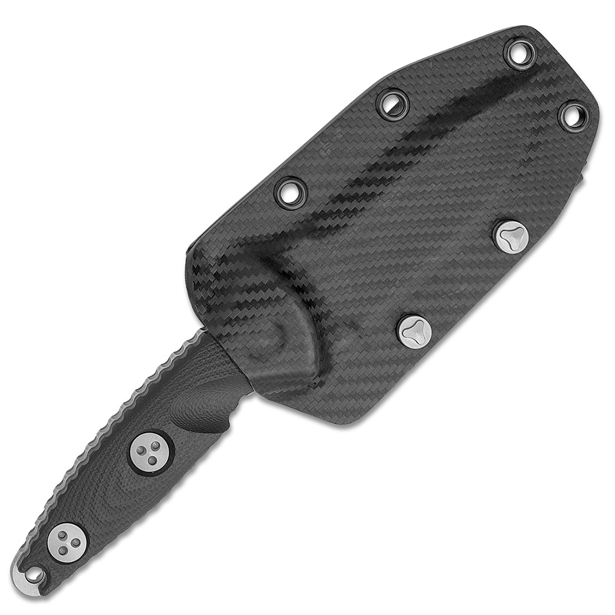 This model features black G-10 handle scales. Stonewash finished M390 stainless steel clip point blade. Bead blast finished hardware. The blade has the model information, serial number, and production date. Includes a carbon fiber wrapped Kydex sheath. Brand new in box.