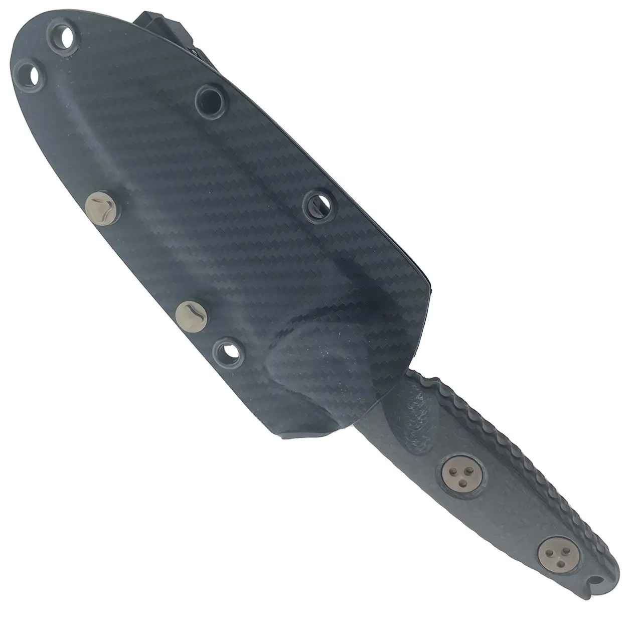 Adding to the popular Socom lineup, Microtech introduced the Socom Alpha mini styled after the Socom Elite folder. As the name suggests this is a scaled down version of the Socom Alpha. Raised full tang construction with jimping all the way around for enhanced grip. Contoured handle scales provide for a comfortable grip and are held secure by three large proprietary screws. A lanyard hole at the end doubles as a glass breaker. Each one includes a custom molle compatible Kydex sheath, making this knife an excellent choice for everyday carry.