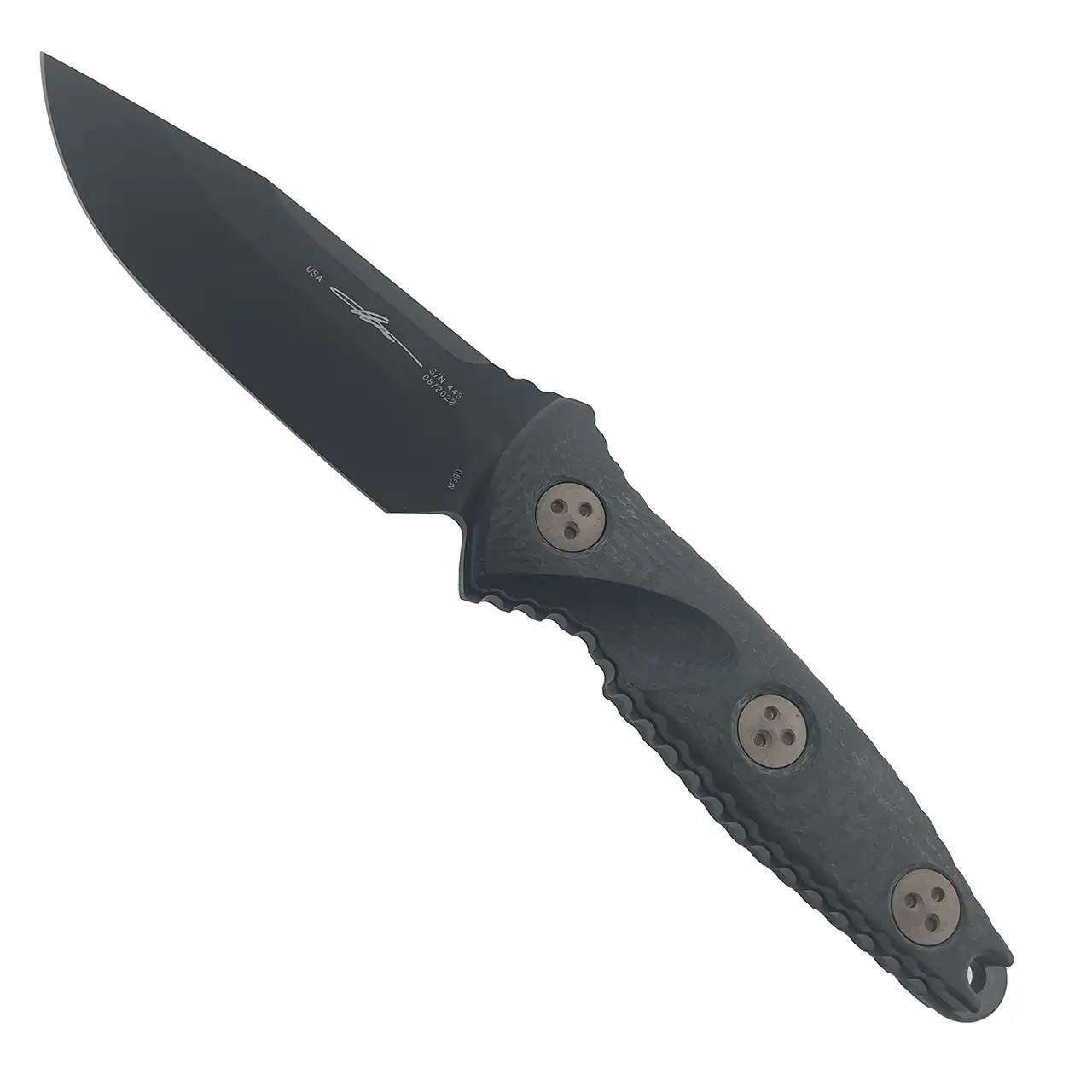 This limited edition Signature Series model features carbon fiber handle scales. Black DLC finished M390 stainless steel clip point blade. BRonze finished hardware. The blade has the model information, serial number, production date, and the Signature Series logo. Includes a carbon fiber wrapped Kydex sheath. Brand new in box.