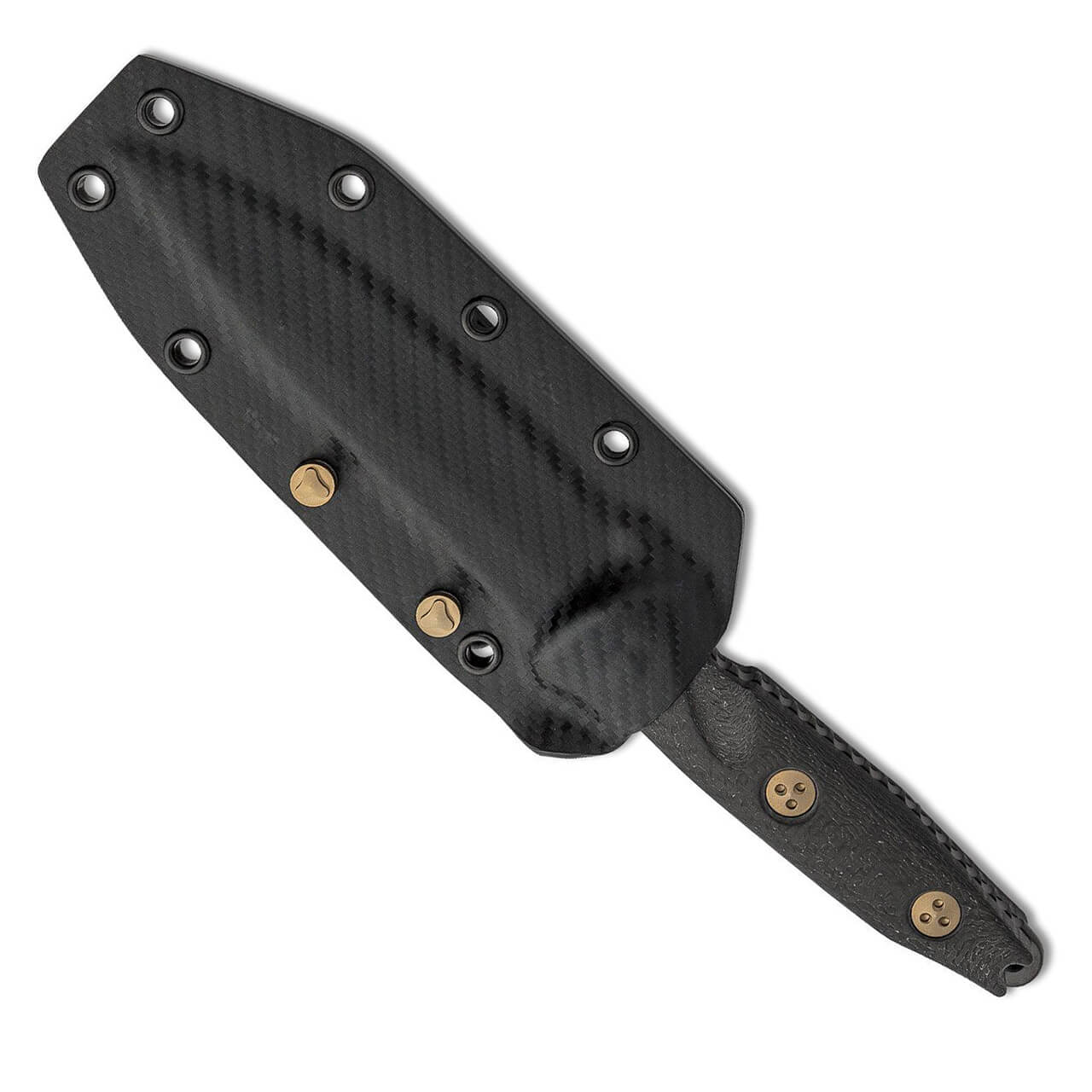 This limited edition Signature Series model features carbon fiber handle scales. Black stonewash DLC finished M390 stainless steel clip point blade. Bronze finished hardware. The blade has the model information, serial number, production date, and the Signature Series logo. Includes a carbon fiber wrapped Kydex sheath. Brand new in box.