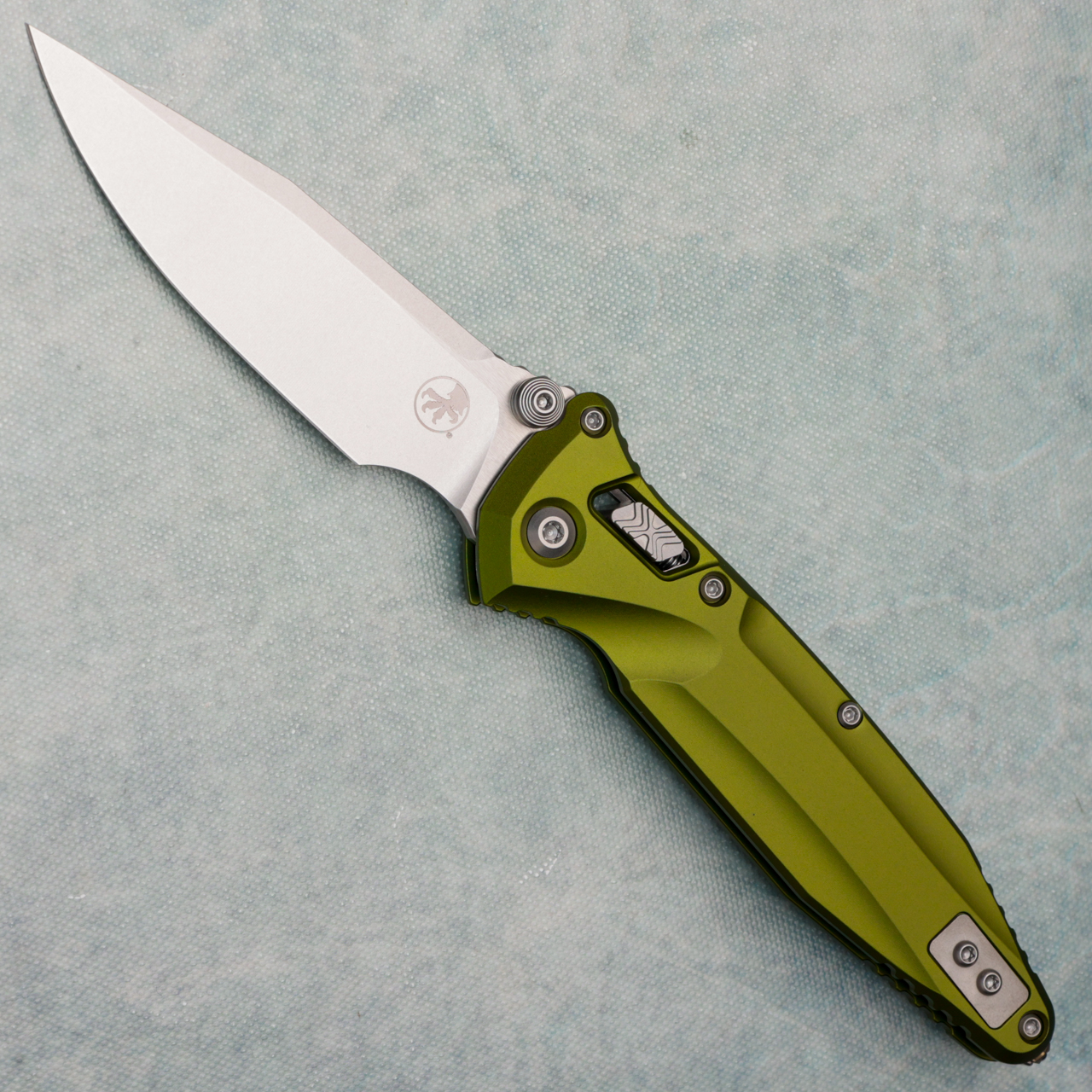 This model features a od green aluminum handle. Stonewash M390MK stainless steel single edge spear point blade. New in box.