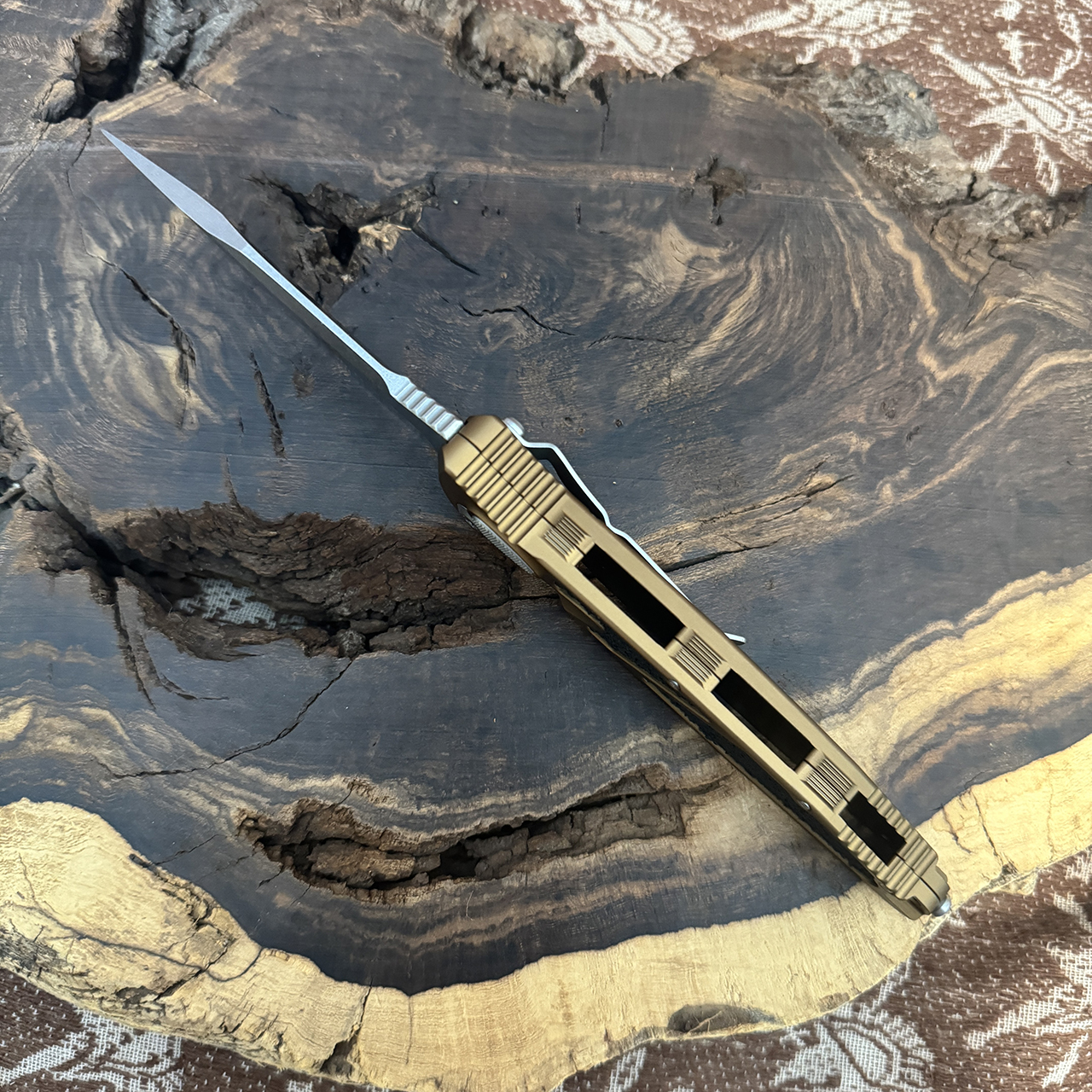 Microtech Socom Elite original was born 1996, the pioneer of the entire Microtech folding knife line. Microtech Elite Auto handle is uniform and symmetrical, which I prefer, compared to my Socom Elite manual based on an asymmetrical aluminum back side handle scale due to the replaceable lock bar insert which limits grip tape application vs presentation symmetrical handle scale. Microtech Socom Elite Auto fires hard and consistent like a Pro-Tech Rockeye (fantastic knife). Microtech Socom Elite, tip down carry position does not affect proficient knife handling folks. Extremely doubtful a Socom Elite will accidently open in your garment pocket. Socom Elite pocket clip, pivot and knurled deploy button are well designed by Anthony L Marfione CEO, President and founder of Microtech, MCK and MDI. Appearance fit and finish on the Socom Elite is spectacular, on par with my Microtech Socom Bravo, a collaboration with Rike Knives. Microtech Socom Elite factory edge is symmetrical, uniform, very sharp and centered out of the box. The grip tape (3M product) is perfect for hands or gloves, ample grip in any position. The Socom Elite small glass breaker is well designed and does not detract from the streamlined appearance. Socom Elite aluminum body screw heads are T-6, pocket clip screw heads are T-8, and the pivot screw heads (both) T-20. Microtech Socom Elite Tan anodizing type III “hardcoat” using sulfuric acid or mixed chemistry electrolytes is beautiful. Socom Elite in this review: Born date is 03/2024 S/N 11942 on the beautiful stonewashed Böhler M390 blade. AEK is beyond spectacular for customer service and product selection for all budgets. Recognition for Brittney AEK office management and extremely efficient shipping includes a handwritten note for each of my eight AEK orders in the past two months. Jordan and LeNeigh are hands on AEK owners, great communication from initial order to follow-up emails if required.
