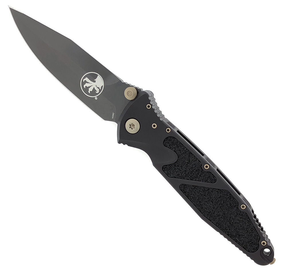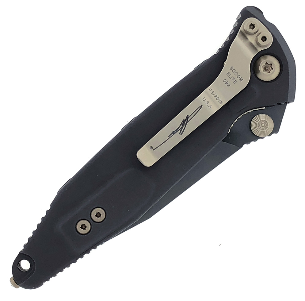 This limited edition signature series model features a black anodized 7075-T611 aluminum handle with grip inserts. Black DLC finished M390 stainless steel single edge "Spike Grind" clip point blade, the tip is sharped up the spine slightly for better piercing ability. Bronze finished hardware and pocket clip. The pocket clip is marked with the Microtech signature series logo, model information, production date, and serial number. The blade is marked with the Microtech Claw logo. Brand new in box.