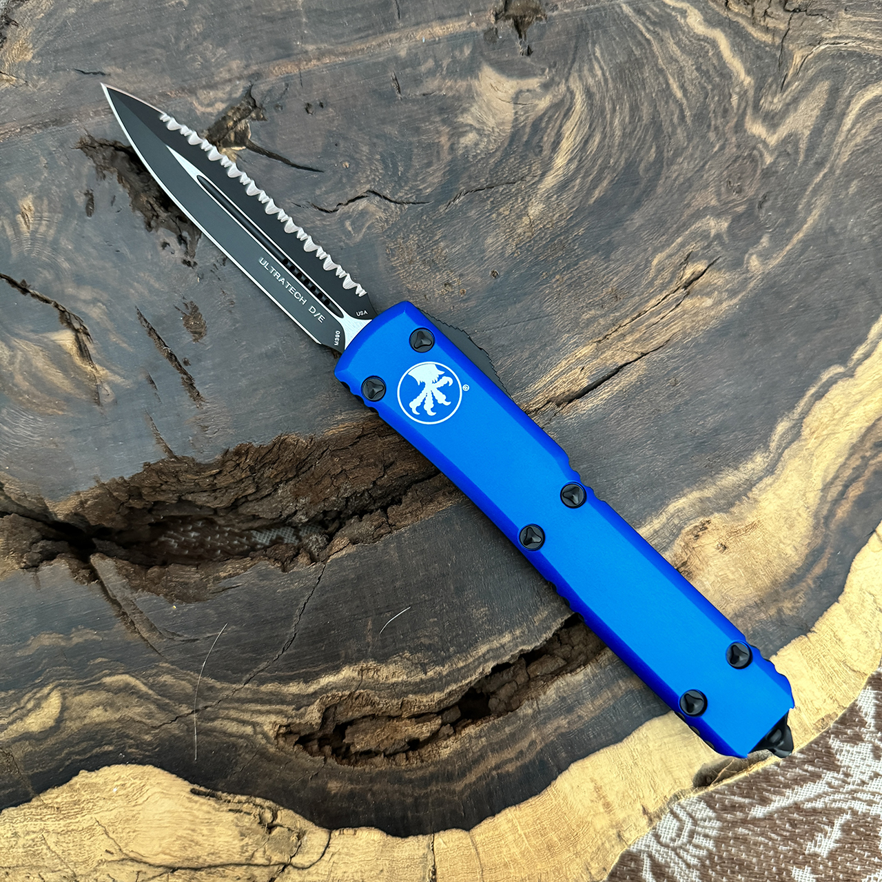 Microtech Ultratech D/E Blue Black Full Serrated 122-3BL