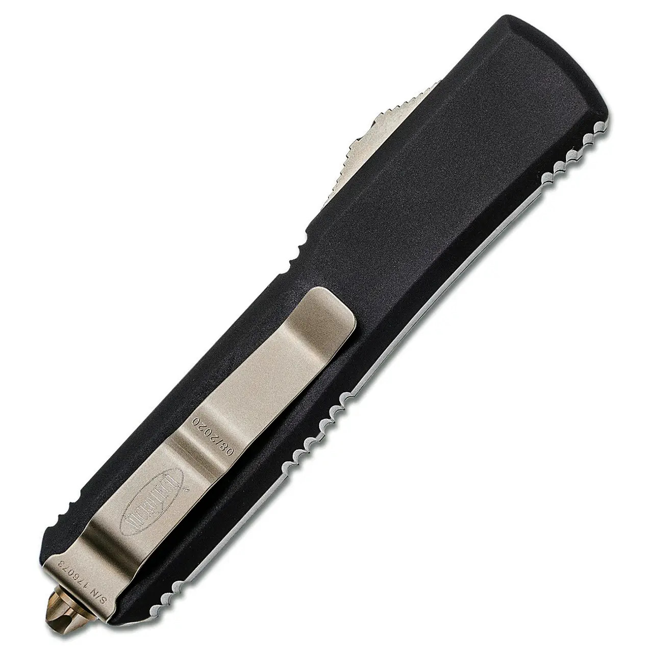 The Ultratech from Microtech is one of their most popular models, it definately provides the most bang for the buck. It will forever set the standard for all out the front knives. The Ultratech is Microtech's original double action out the front knife, and has been the foundation of their entire OTF line. Over the years, it has gone through several modifications, each time becoming more efficient and reliable. The Ultratech's spring remains in an "at rest" position at all times except when deployed. This ensures that the compressed spring will not become fatigued, assuring users that when the knife is fired, it will operate effectively. The Ultratech's lightweight, one handed open and close action, slim shape, and scalpel sharp blade make it a one of a kind knife!