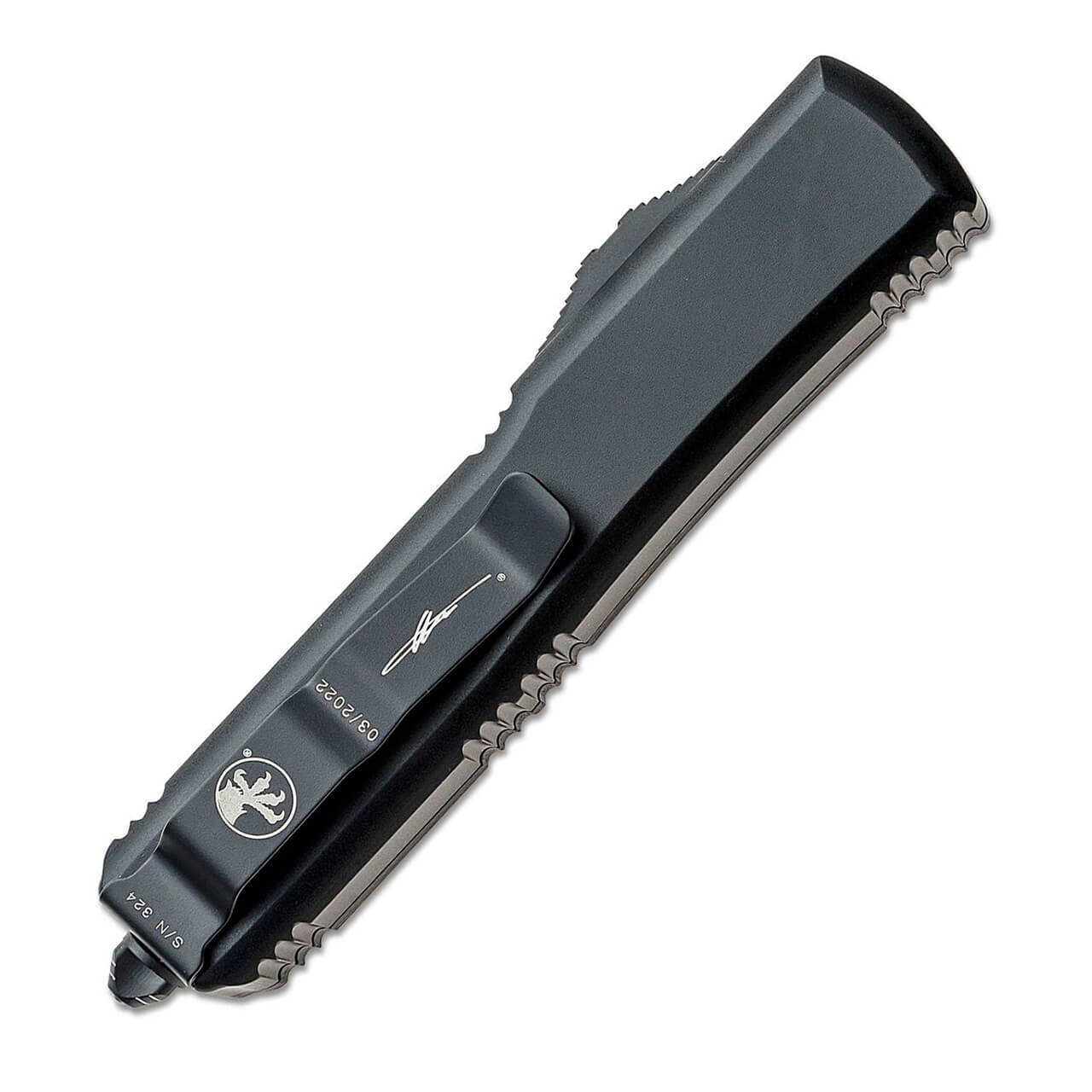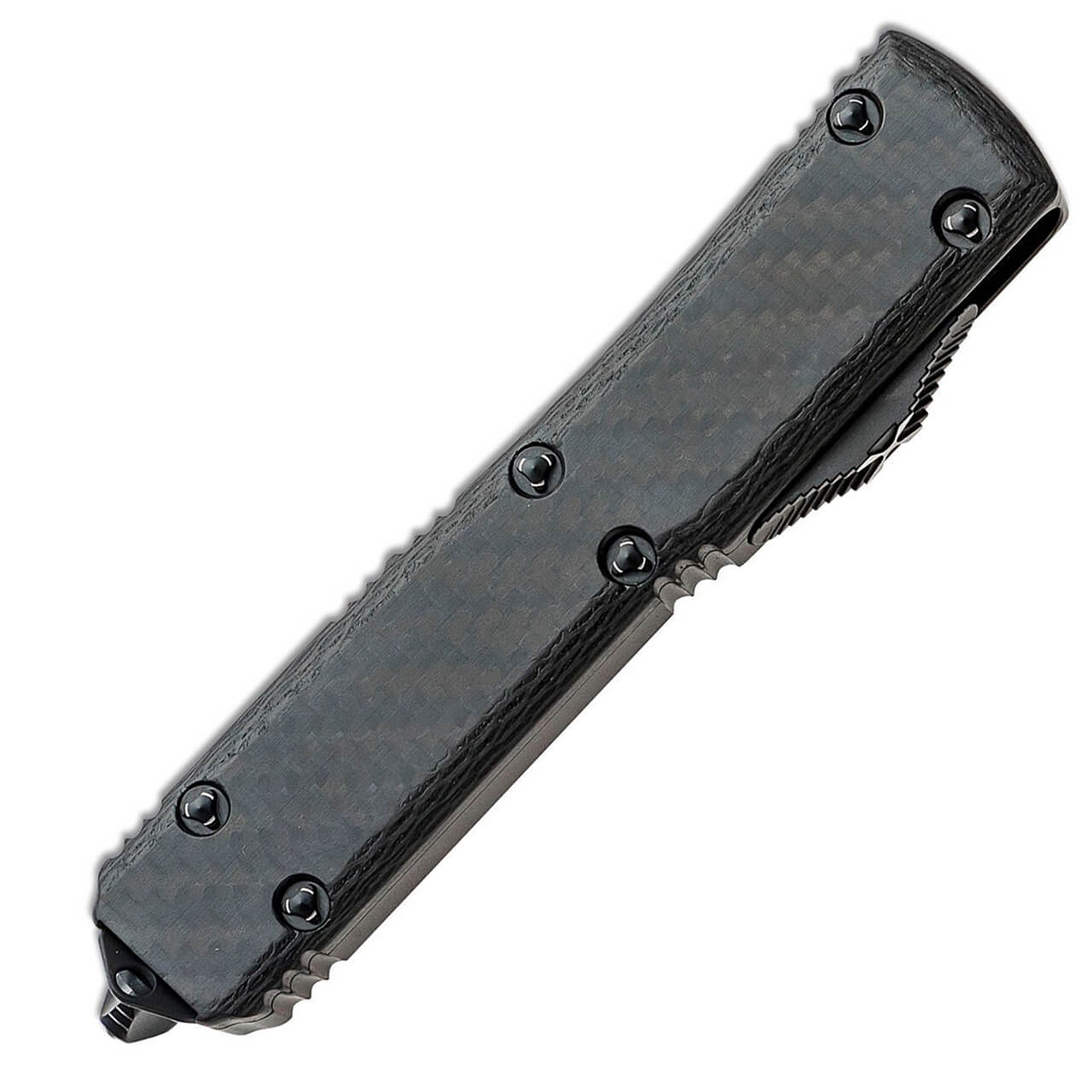The Ultratech from Microtech is one of their most popular models - it definately provides the most bang for the buck. It will forever set the standard for all out-the-front knives. The Ultratech is Microtech's original double action OTF knife and has been the foundation of their entire OTF line. Over the years it has gone through several modifications, each time becoming more efficient and reliable. The Ultratech's spring remains in an "at rest" position at all times, except when deployed. This ensures that the compressed spring will not become fatigued, assuring users that when the knife is fired, it will operate effectively. The Ultratech's lightweight, one handed open and close action, slim shape, and scalpel sharp blade make it a one of a kind knife!