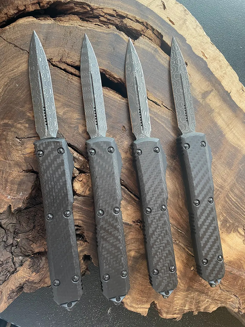 Microtech Ultratech D/E Carbon Fiber Top Damascus Standard Ringed Hardware Signature Series 122-16CFS