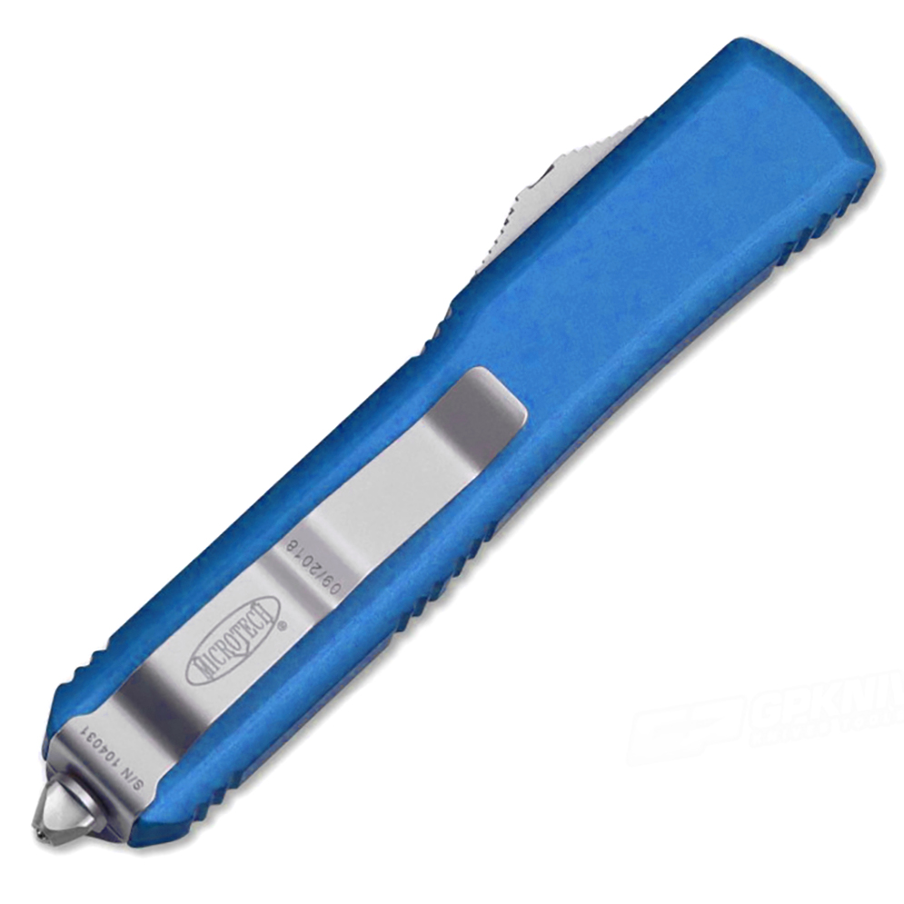Microtech Ultratech D/E Contoured Blue Satin Full Serrated 122-6BL
