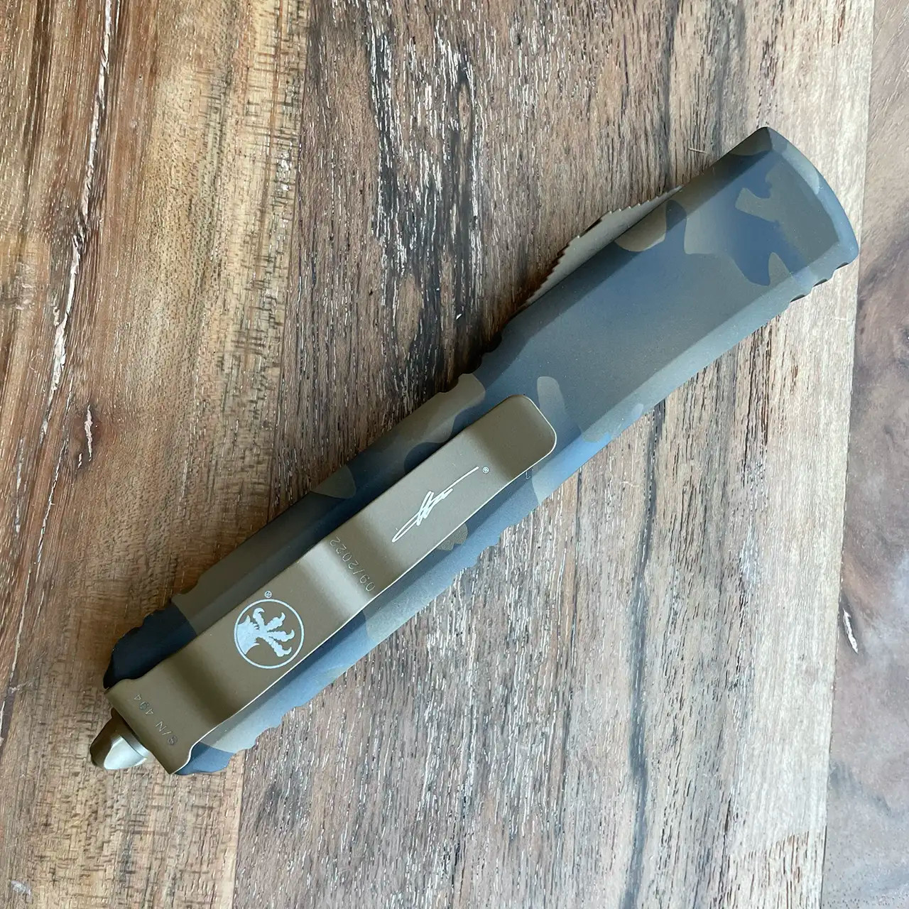 Microtech Ultratech D/E Coyote Camo Cerakote Full Serrated Signature Series 122-3CCS