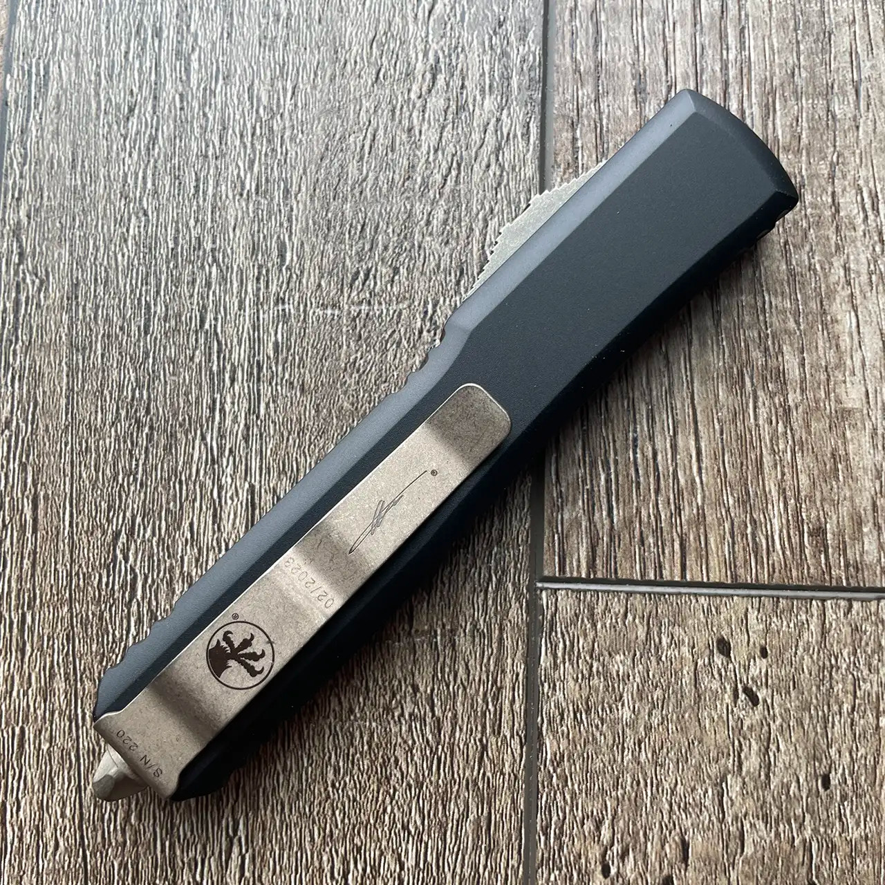 The Ultratech from Microtech is one of their most popular models, it definately provides the most bang for the buck. It will forever set the standard for all out the front knives. The Ultratech is Microtech's original double action out the front knife, and has been the foundation of their entire OTF line. Over the years, it has gone through several modifications, each time becoming more efficient and reliable. The Ultratech's spring remains in an "at rest" position at all times except when deployed. This ensures that the compressed spring will not become fatigued, assuring users that when the knife is fired, it will operate effectively. The Ultratech's lightweight, one handed open and close action, slim shape, and scalpel sharp blade make it a one of a kind knife!