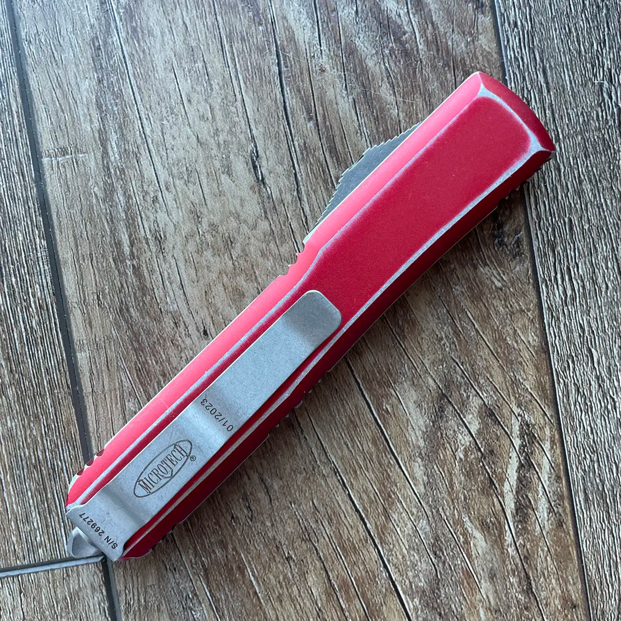 Microtech Ultratech D/E Distressed Red Apocalyptic Double Full Serrated 122-D12DRD